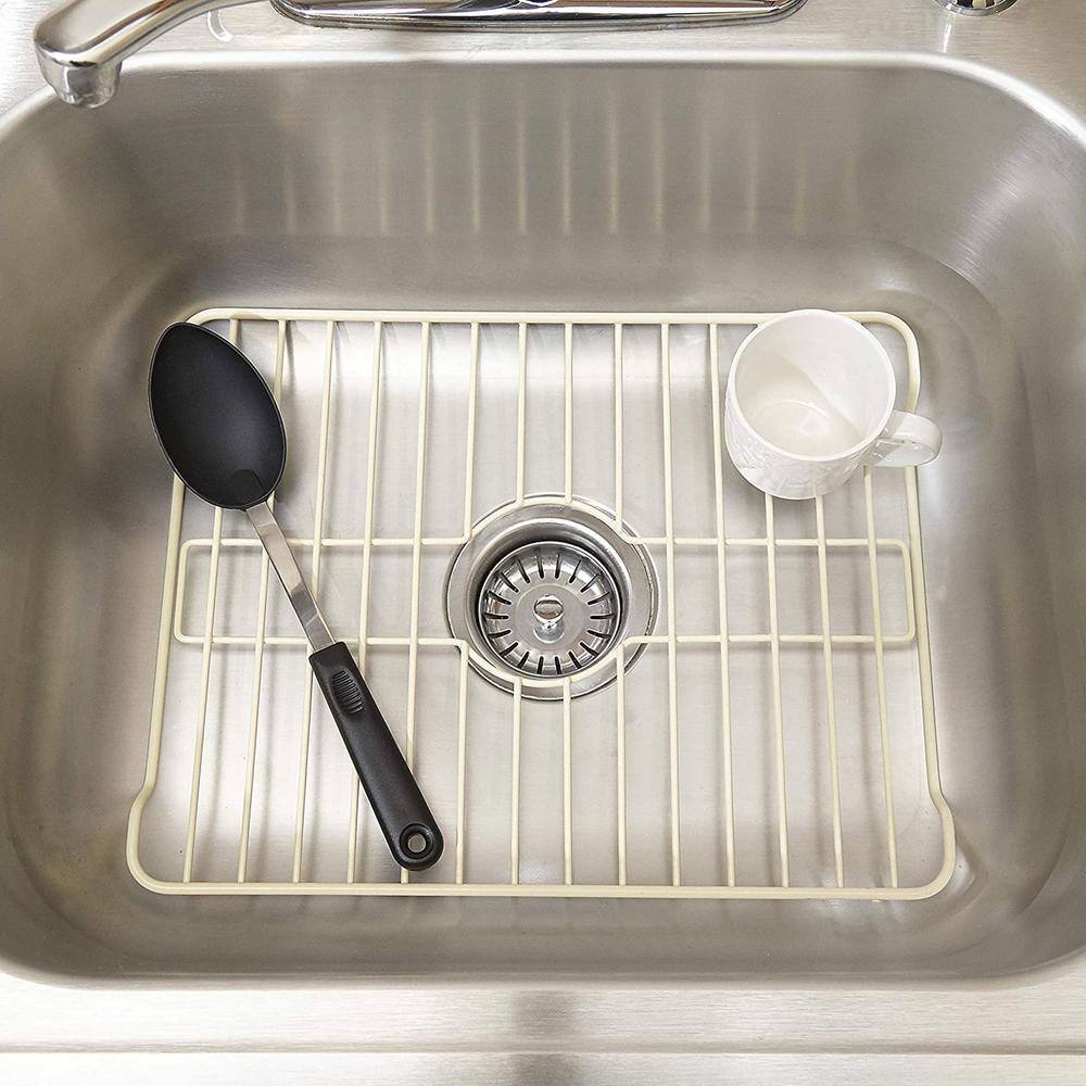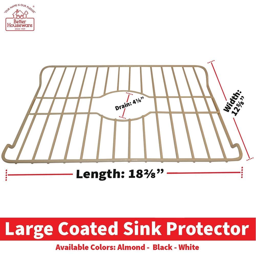 Protect your sink from scratches and your dishes from chips with Better Houseware's Almond Steel Sink Bottom Grid Protector. Its durable coated-steel construction with cushioned feet ensures superior defense against wear and tear, while facilitating drainage with its smart open center design.
