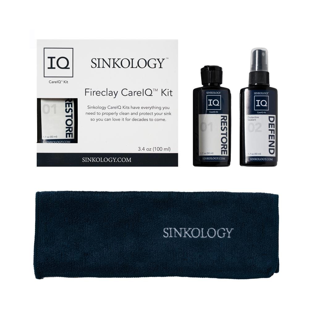 The SINKOLOGY SinkSense Fireclay Care IQ Kit makes sink maintenance a breeze. Featuring Defend and Restore solutions alongside a reusable microfiber cloth, this kit expertly protects and polishes fireclay sinks, ensuring a lifetime of elegance and functionality.