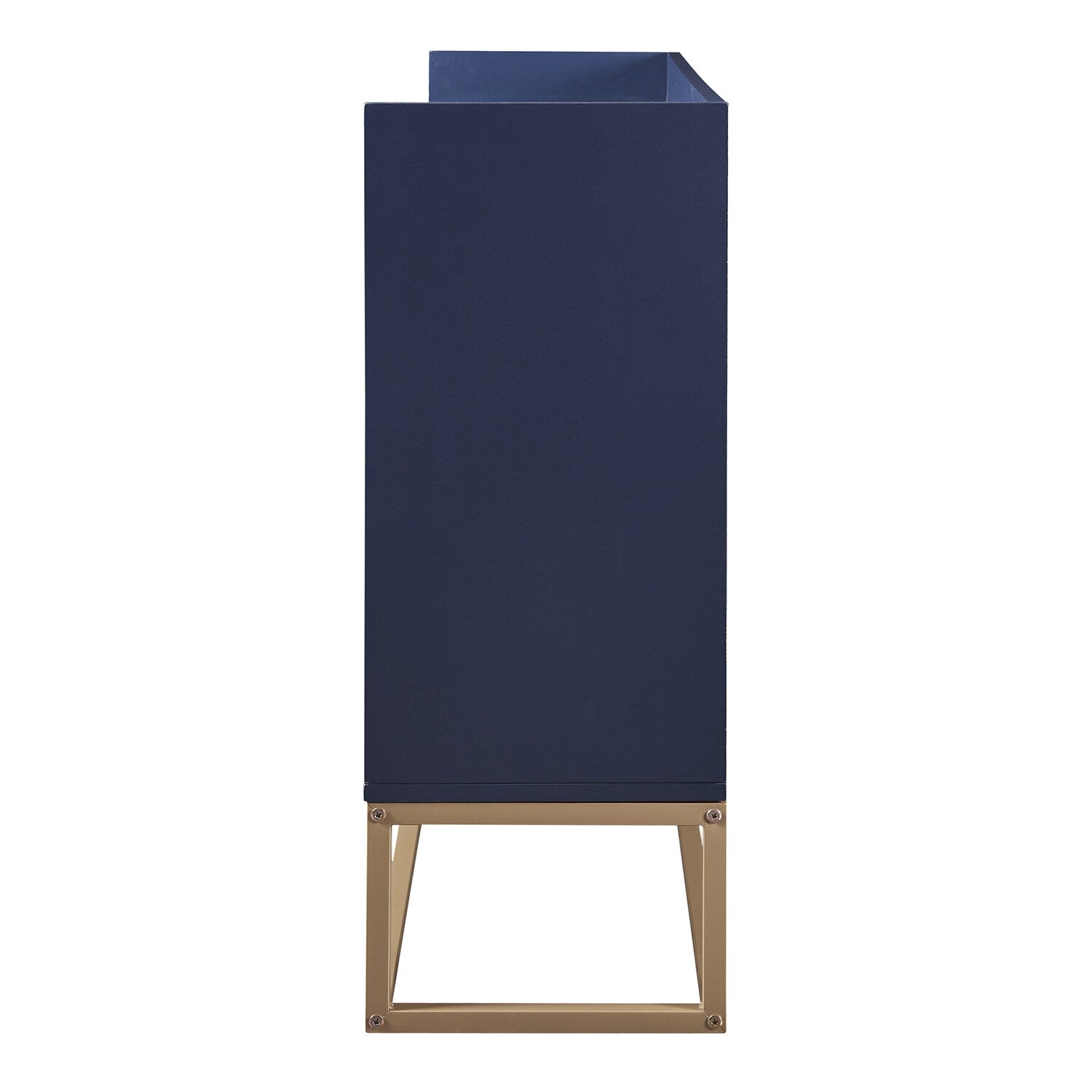 A: The sideboard doors have a press-to-open mechanism that lets you simply press the center to open or close securely.