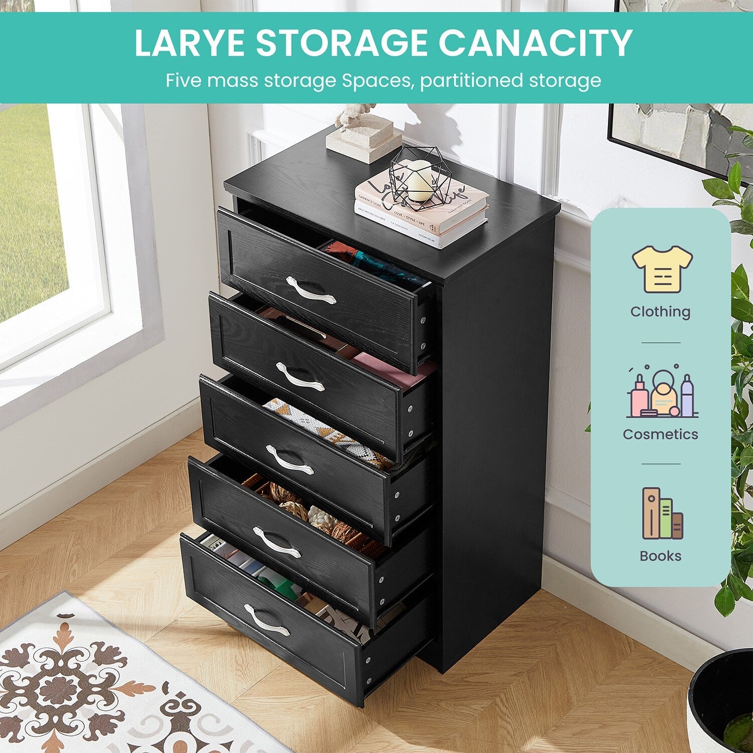 • Storage Versatility: Five spacious drawers for organizing clothes, accessories, and more.
