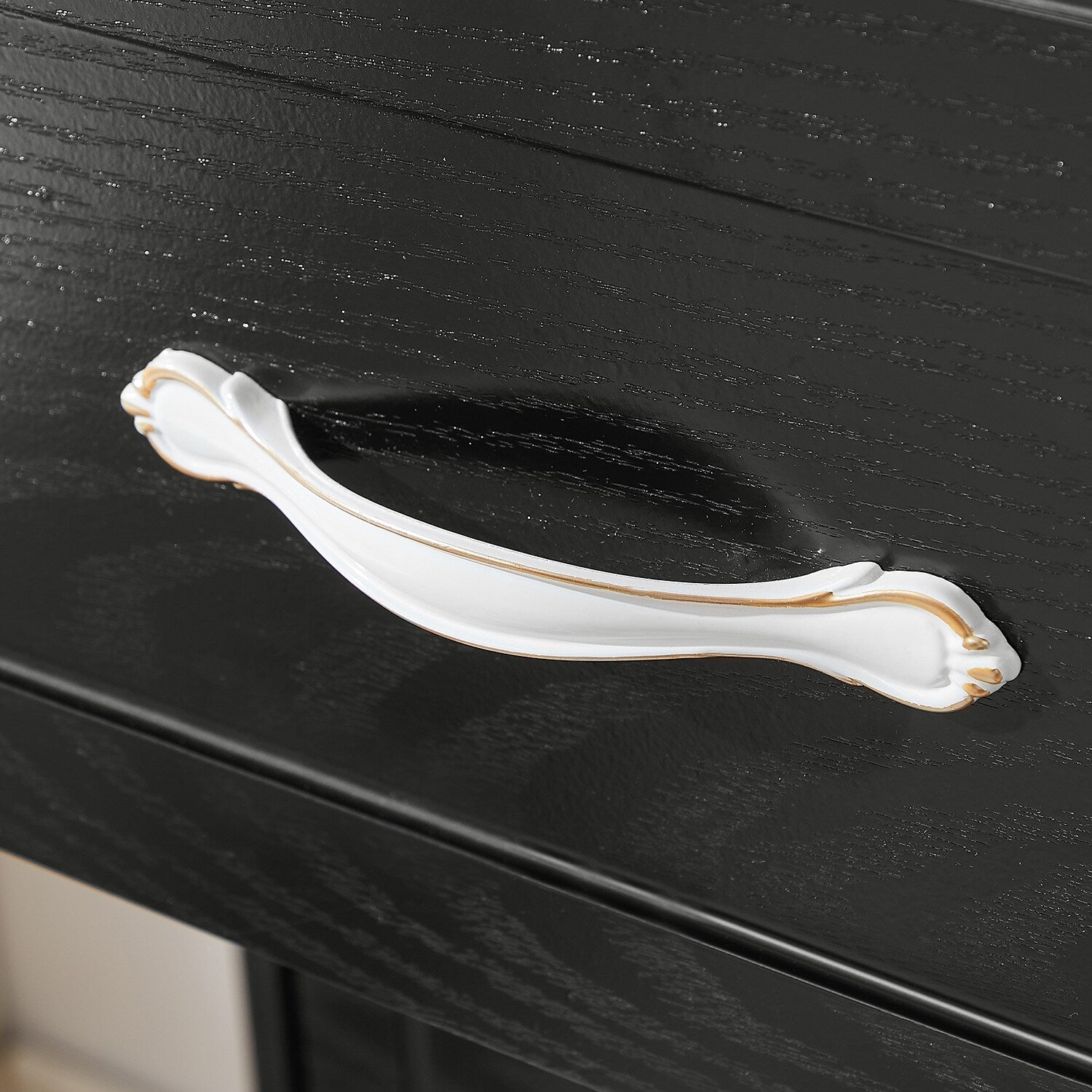 • Easy Access: Smooth metal rails and antique white aluminum pulls with gold trim for effortless drawer operation.
