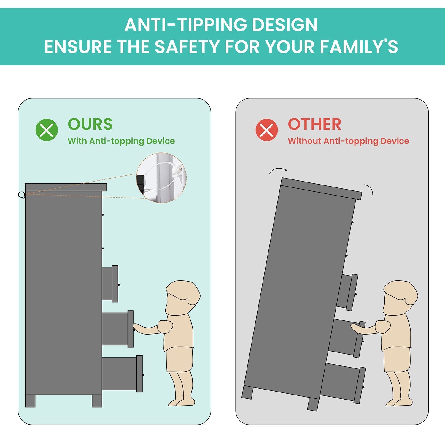 • Safety Feature: Includes anti-tip hardware for secure wall mounting, ensuring safety and stability.
