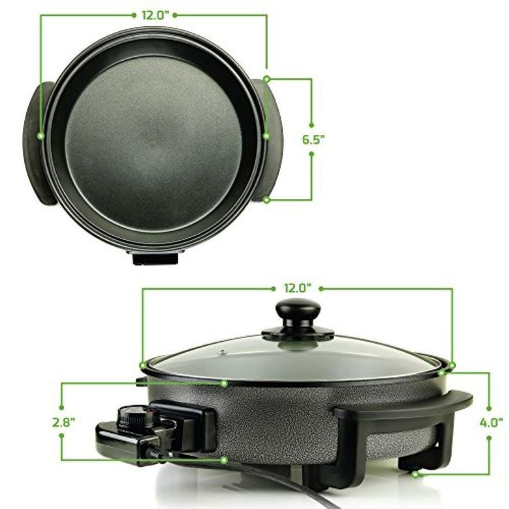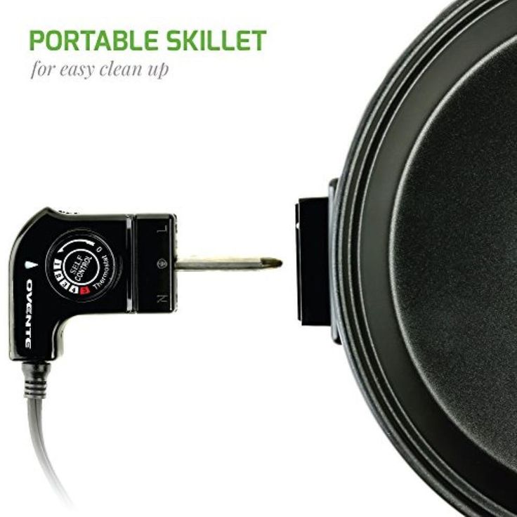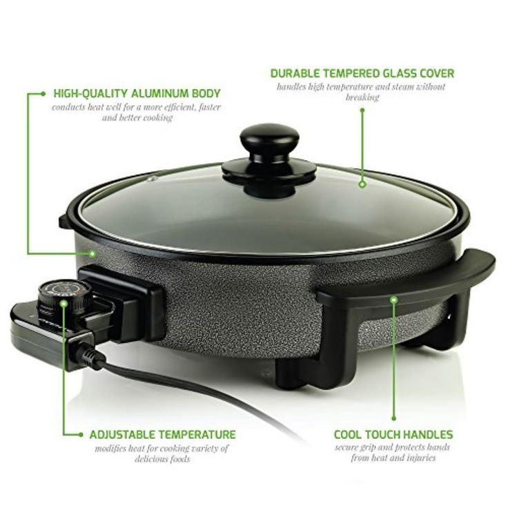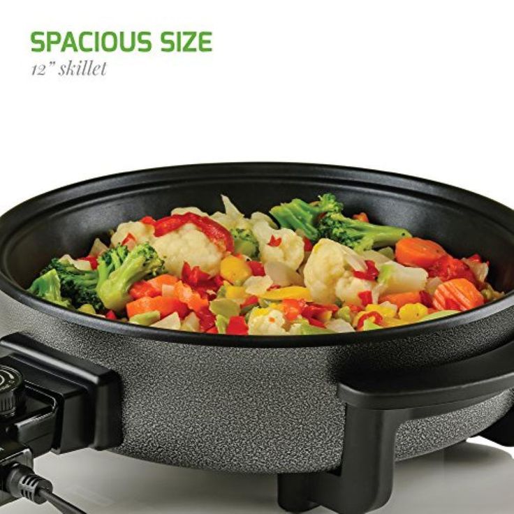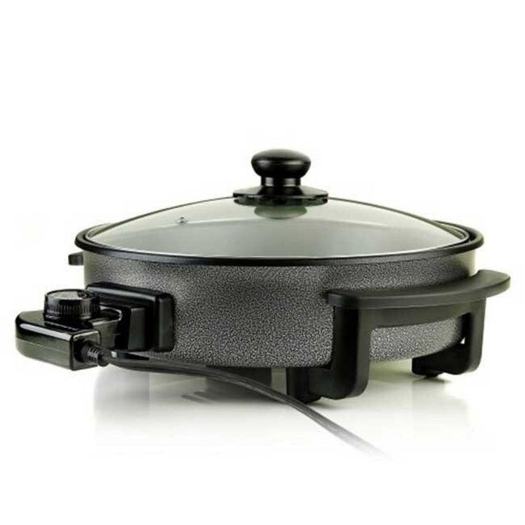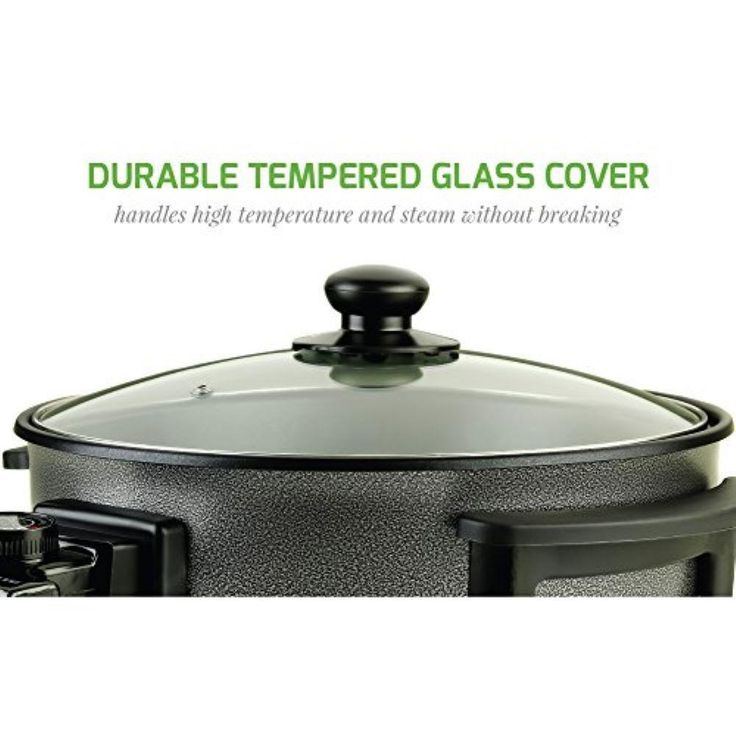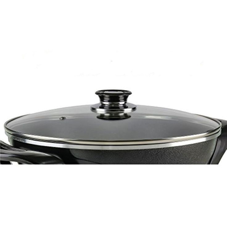 12 In. Black Non Stick Electric Skillet Aluminum Body and Tempered Glass Lid, Removable Temperature Knob