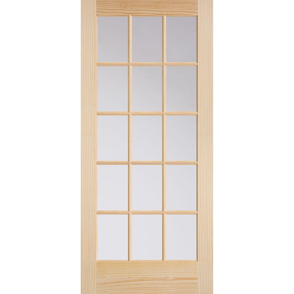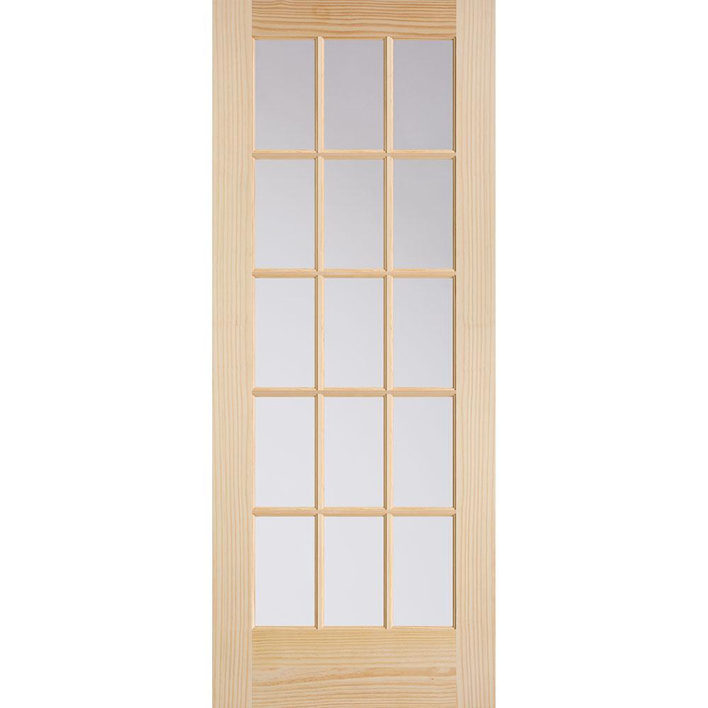 30 in. x 80 in. French 15-Lite Solid-Core Smooth Unfinished Pine Veneer Composite Interior Door Slab