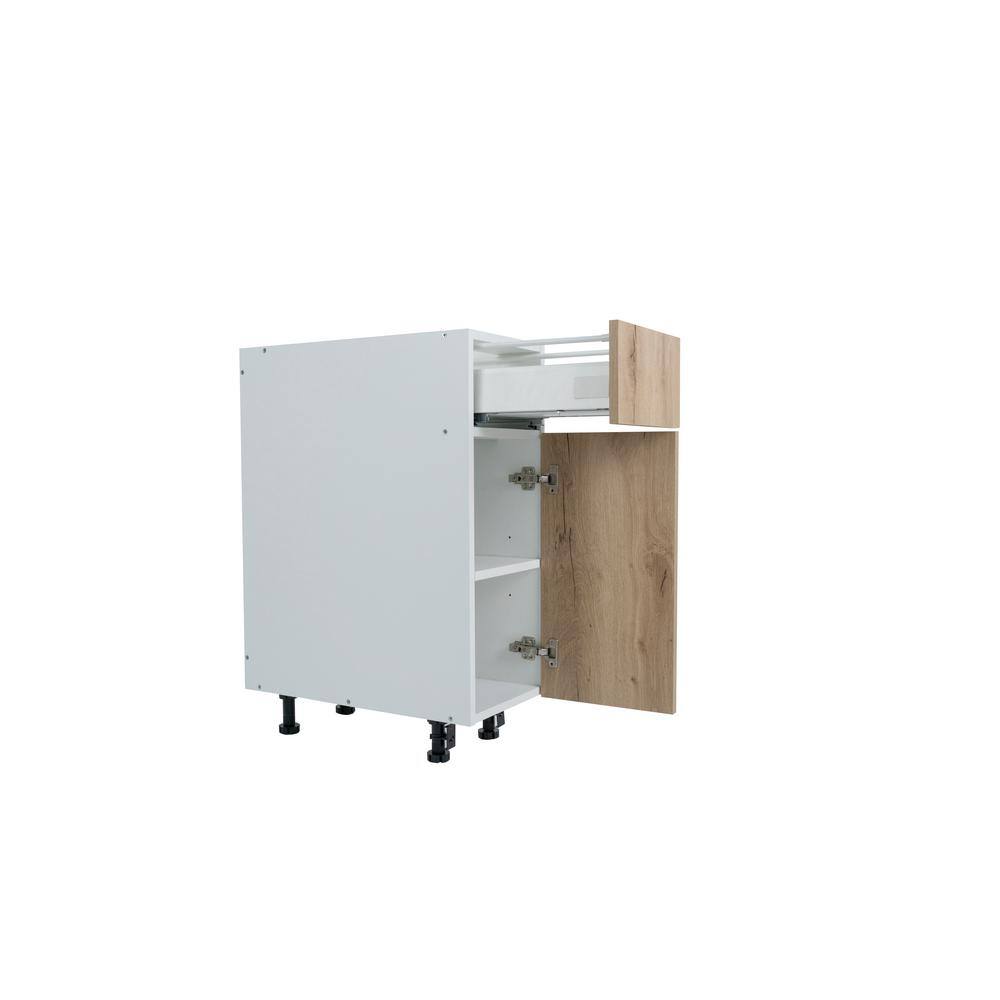 The Cambridge Radiance Base Kitchen Cabinet delivers a modern, sleek design with its frameless structure and Light Oak Laminate finish. Engineered with durable MDF and particle board materials, it offers both aesthetic appeal and robust functionality, perfect for contemporary kitchens that value style and substance.