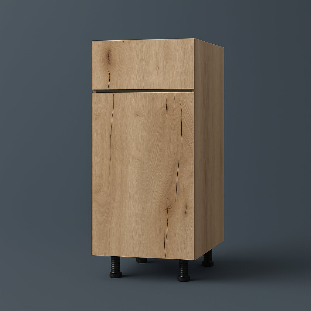 The Cambridge Radiance cabinet transforms your kitchen into a haven of modern sophistication. Its Light Oak Laminate finish exudes warmth and natural beauty, while the frameless design ensures a seamless and contemporary aesthetic. Pair it with sleek countertops and stainless steel appliances for a harmonious look. This cabinet is not just a storage solution; it's a statement piece that embodies luxurious living.