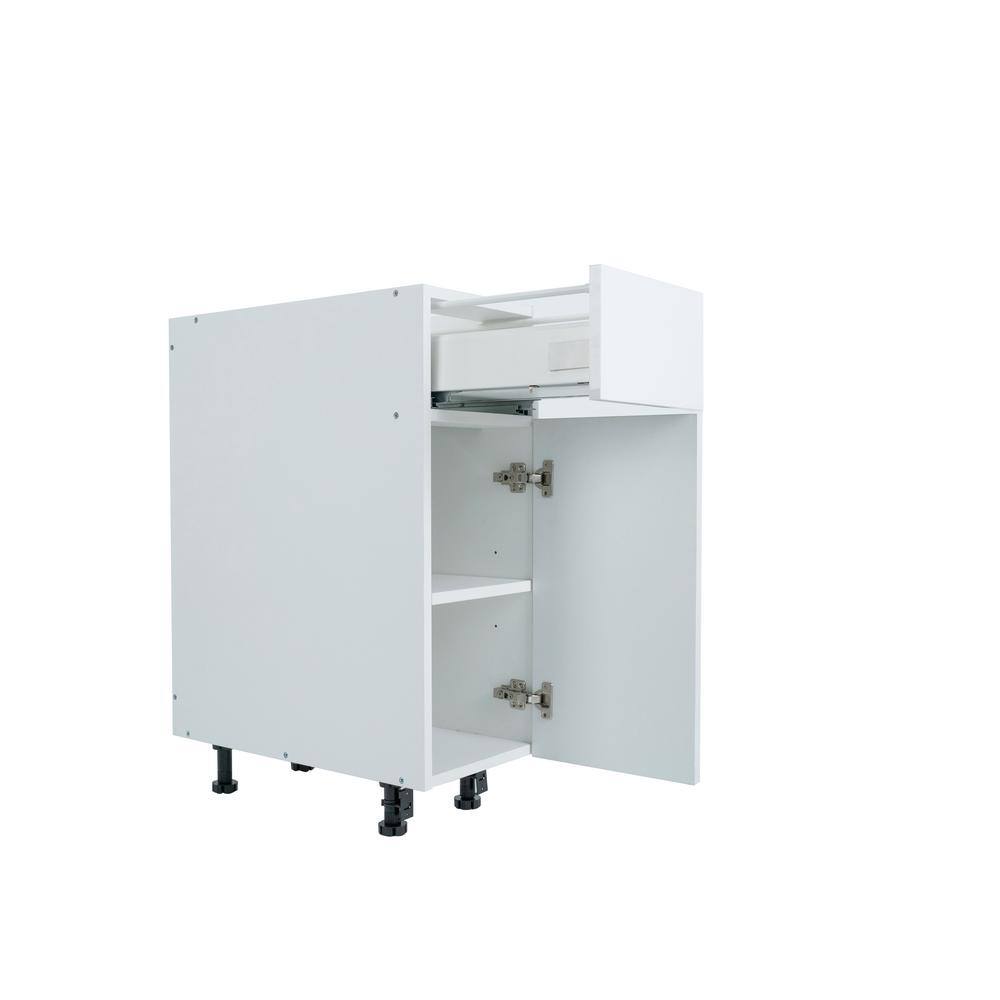 Upgrade your kitchen with the Cambridge Radiance White Gloss Slab Base Cabinet. Featuring a sophisticated white glossy finish, this cabinet offers a contemporary design with durable MDF construction. It comes ready-to-assemble with soft close doors and drawers, ensuring a seamless and stylish upgrade to any kitchen.