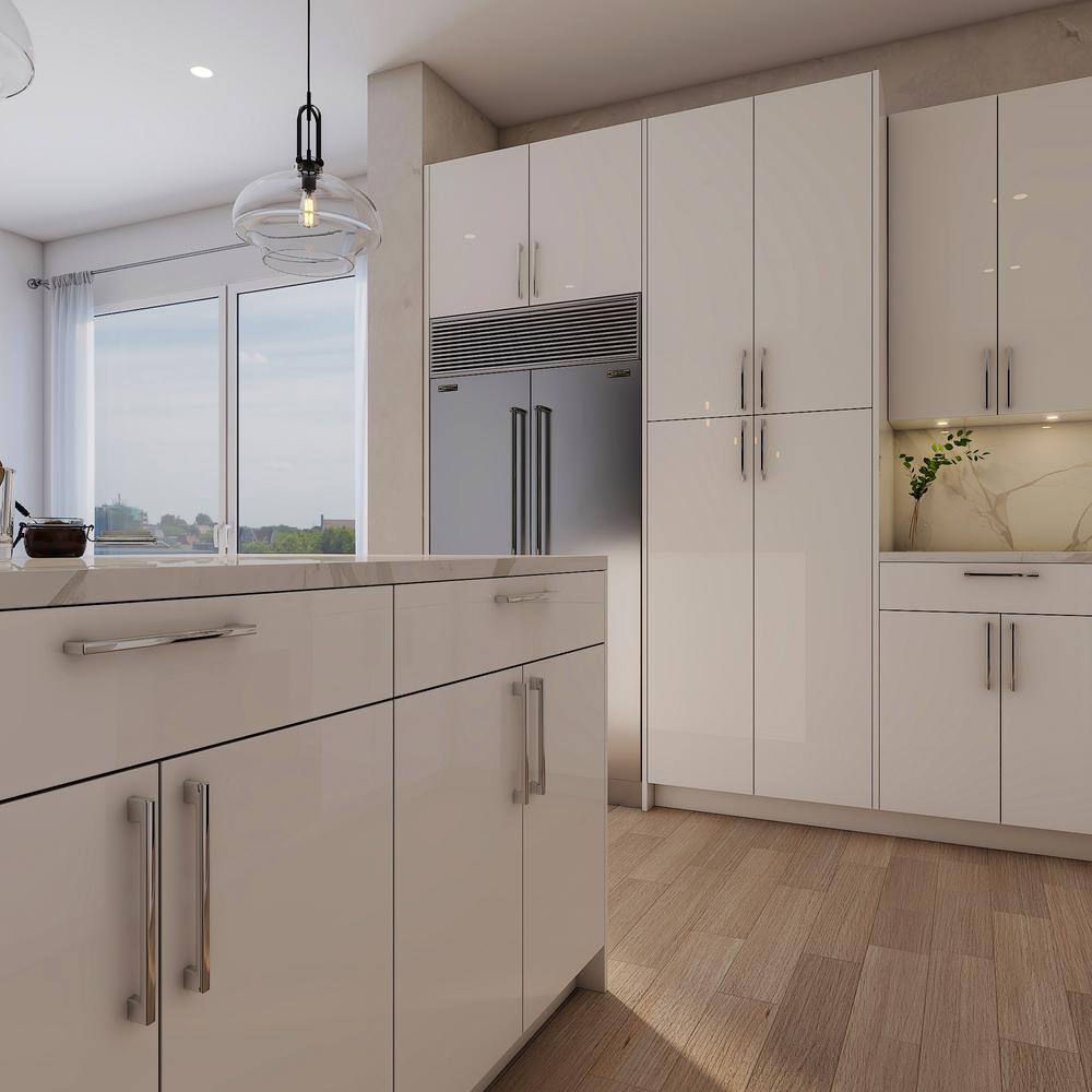 Bring your kitchen to life with the sleek allure of the Cambridge Radiance White Gloss Cabinet. Its reflective surface not only brightens up the space but also adds dimension to your decor. Pair this glossy masterpiece with bold, matte hardware for a striking contrast that elevates any modern aesthetic. Style it with minimalistic accents and let your culinary domain exude sophistication and warmth, making it a cornerstone of luxurious living.