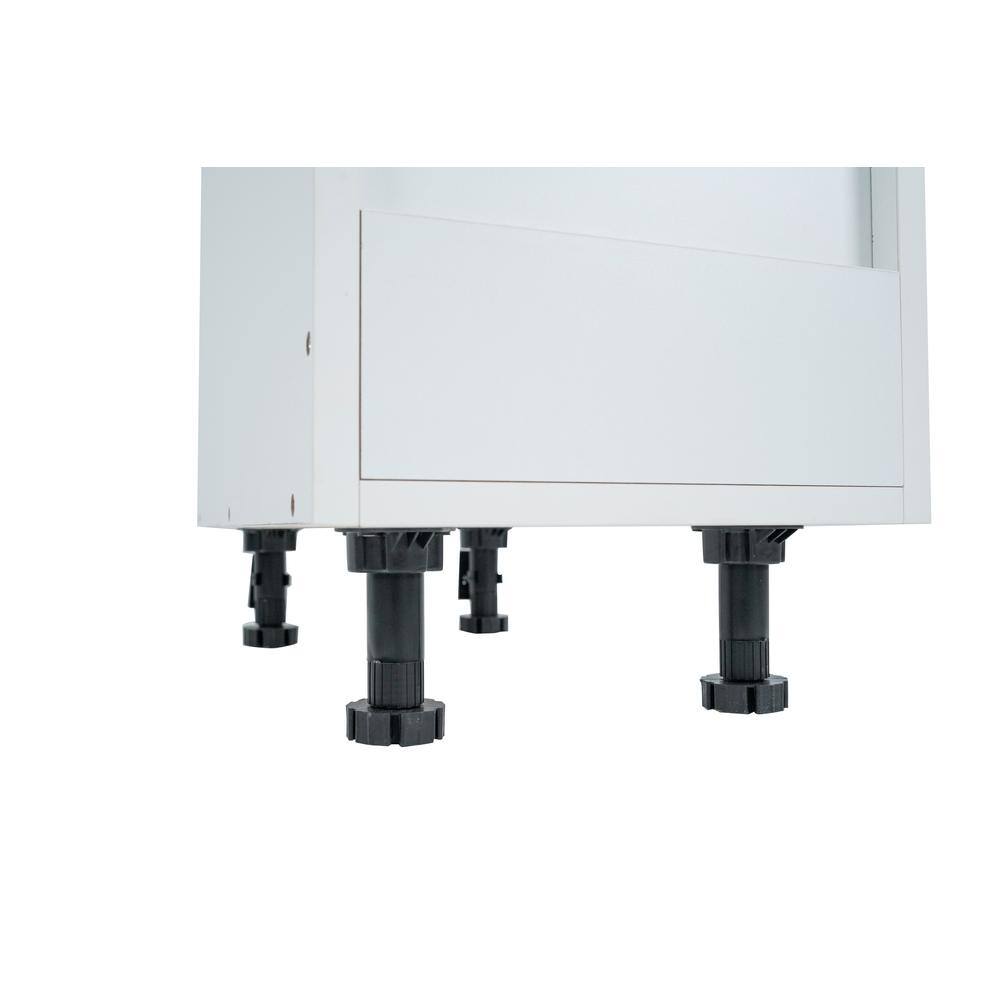A: Yes, the cabinet includes adjustable feet that make it easy to level even on uneven floors without the need for shims.