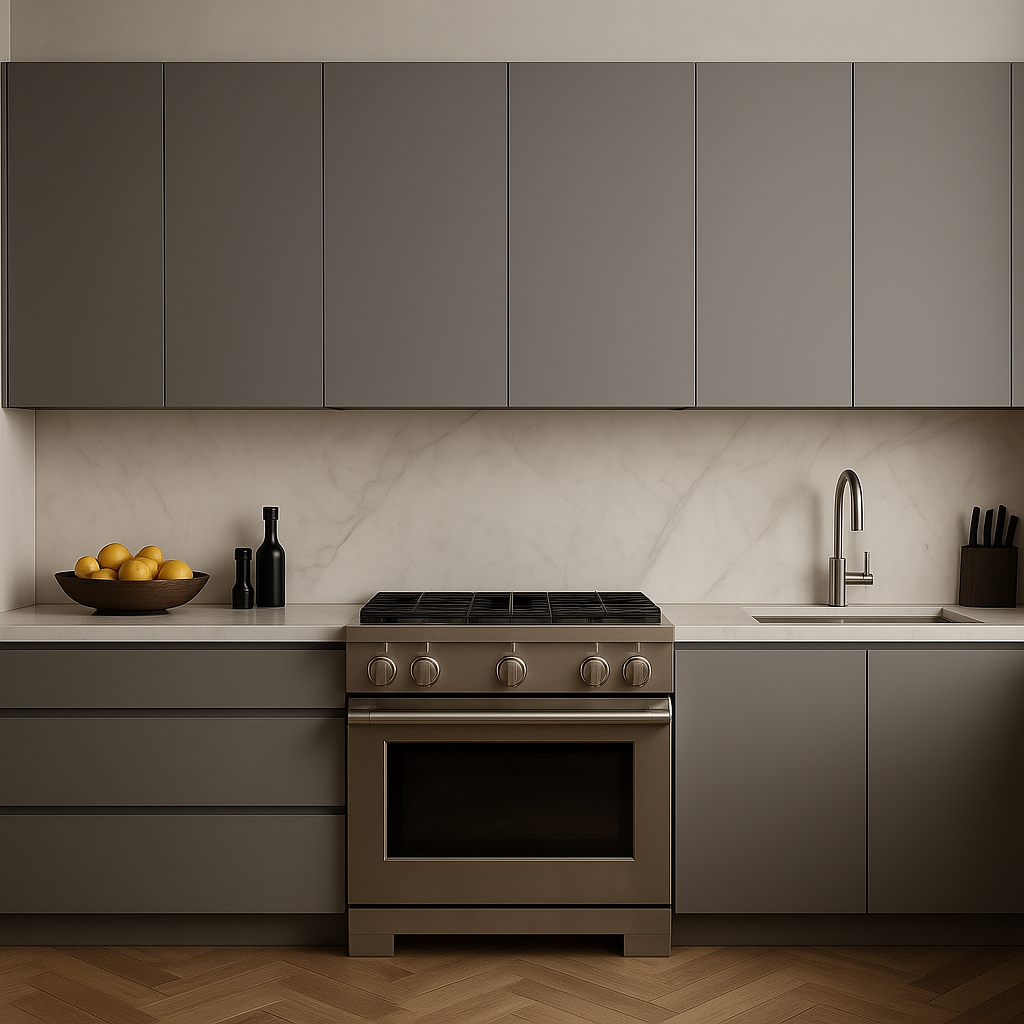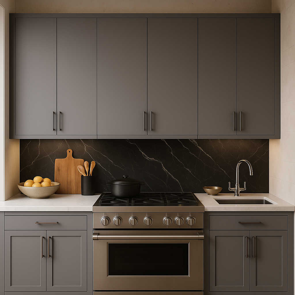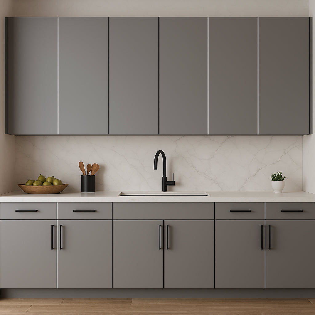 Upgrade your kitchen with the Cambridge Radiance Matte Grey Cabinet for a sleek and modern look.