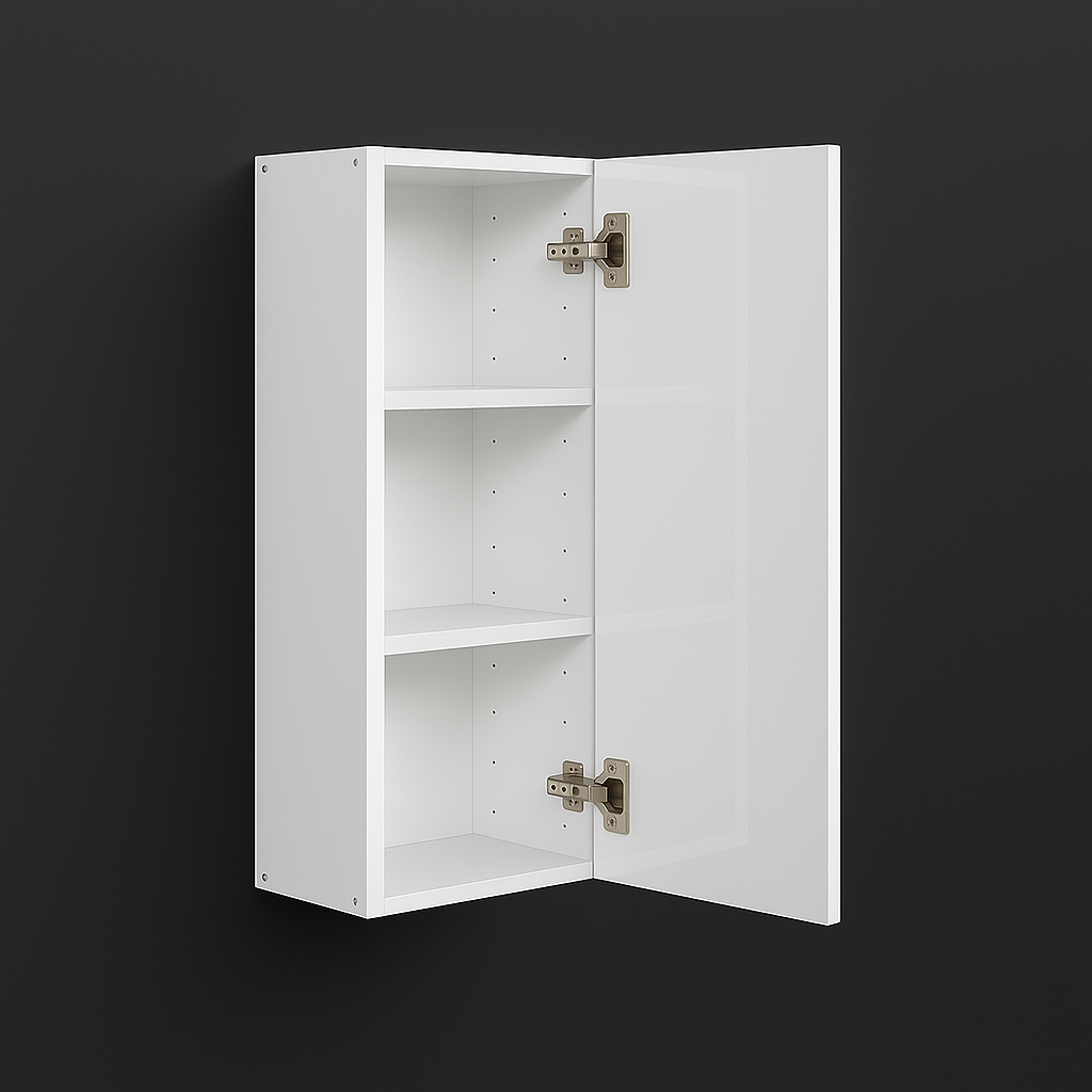 The Cambridge Radiance kitchen cabinet combines modern design with practical features, including adjustable shelves and soft-close doors. Its high-gloss white finish and frameless construction make it a stylish and functional addition to any kitchen.