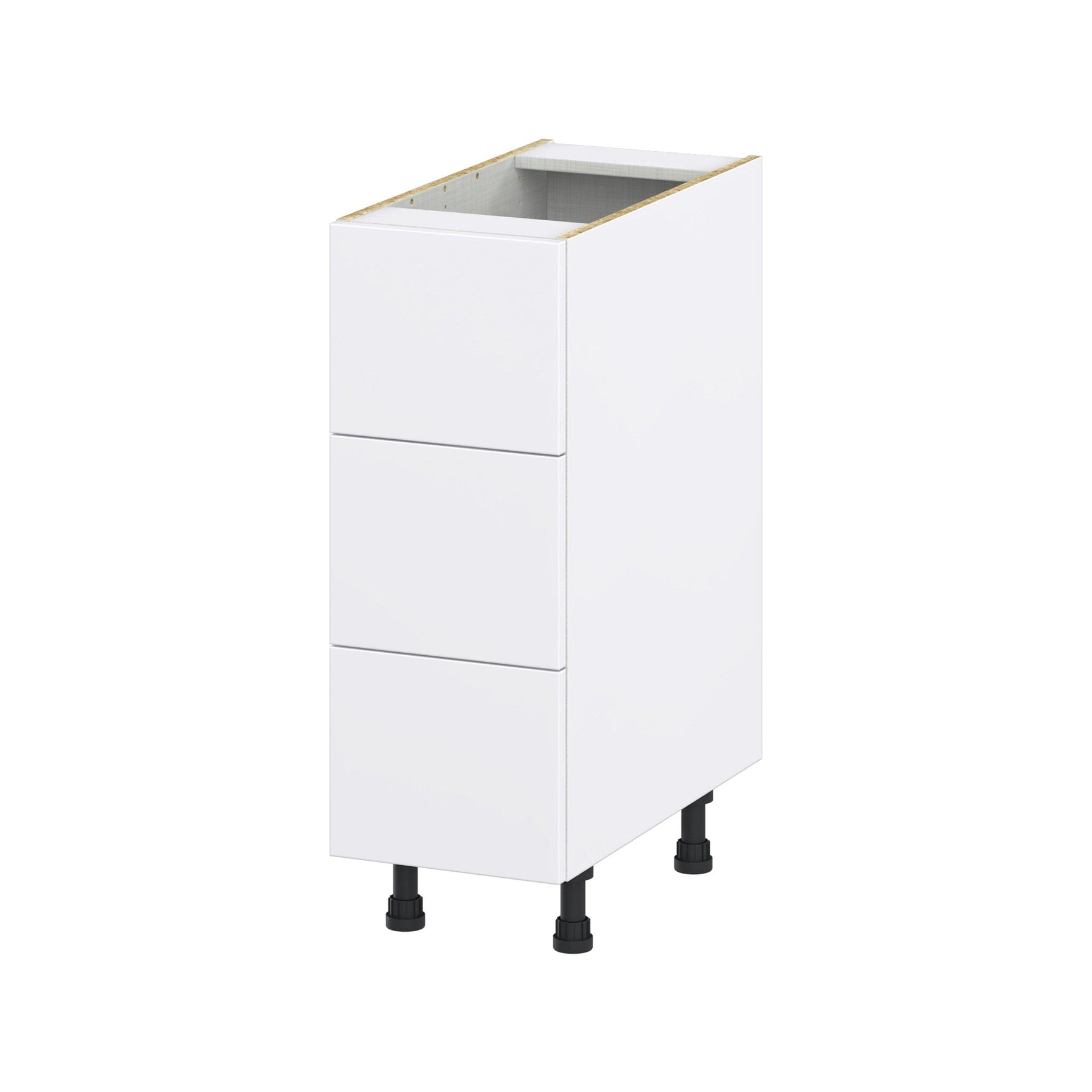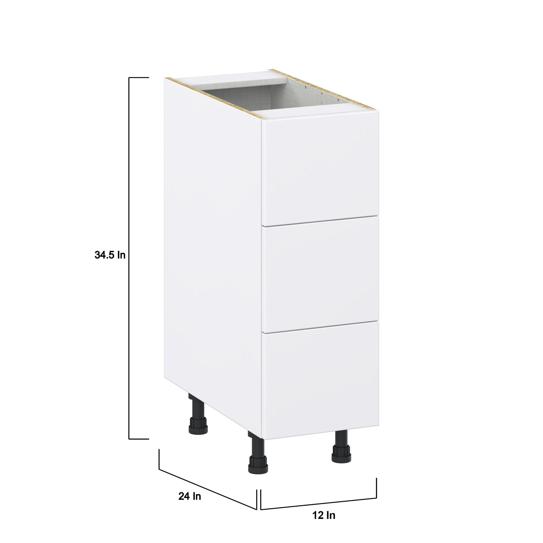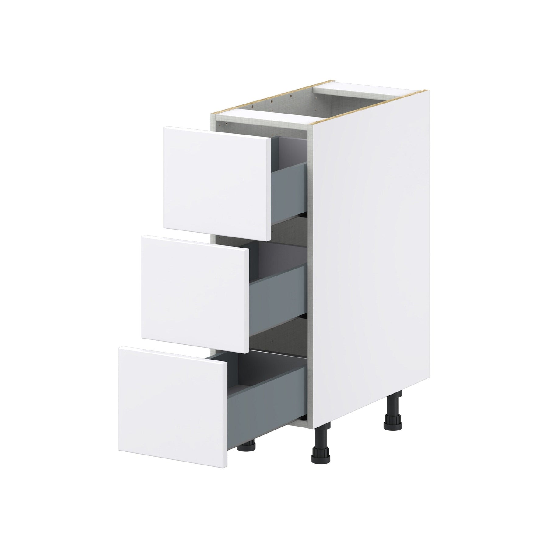 Hugo&Borg Lasalle 12-in W x 34.5-in H x 24-in D Bright White Slab 3-Drawer Base Fully Assembled Cabinet (Flat Panel Style)