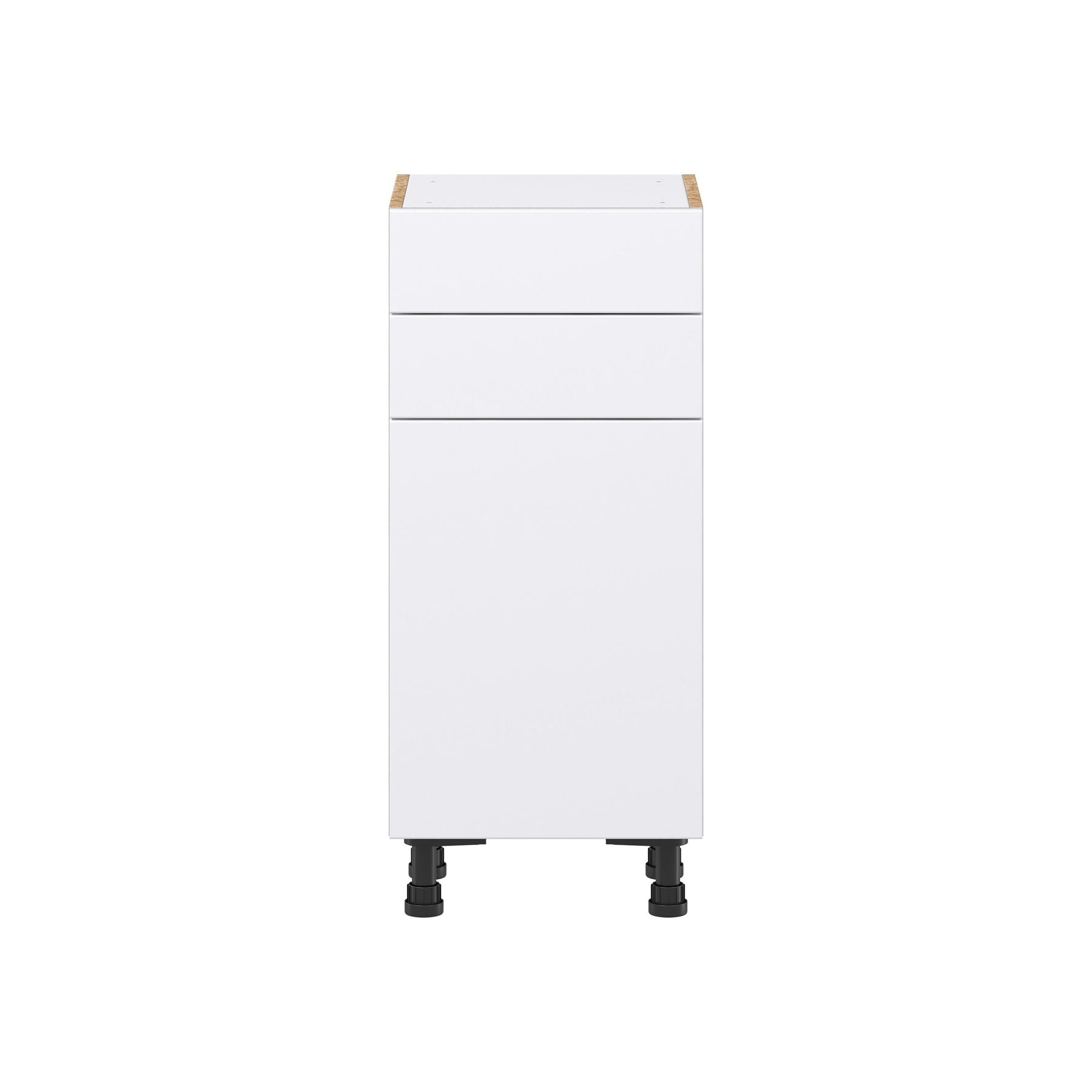 Enhance your storage solutions with the Hugo&Borg Lasalle Bright White Slab Base Cabinet. Built for functionality with its full-extension soft-close drawers and moisture-resistant laminate finish, this fully assembled cabinet is perfect for modern spaces looking for a sleek, efficient design.