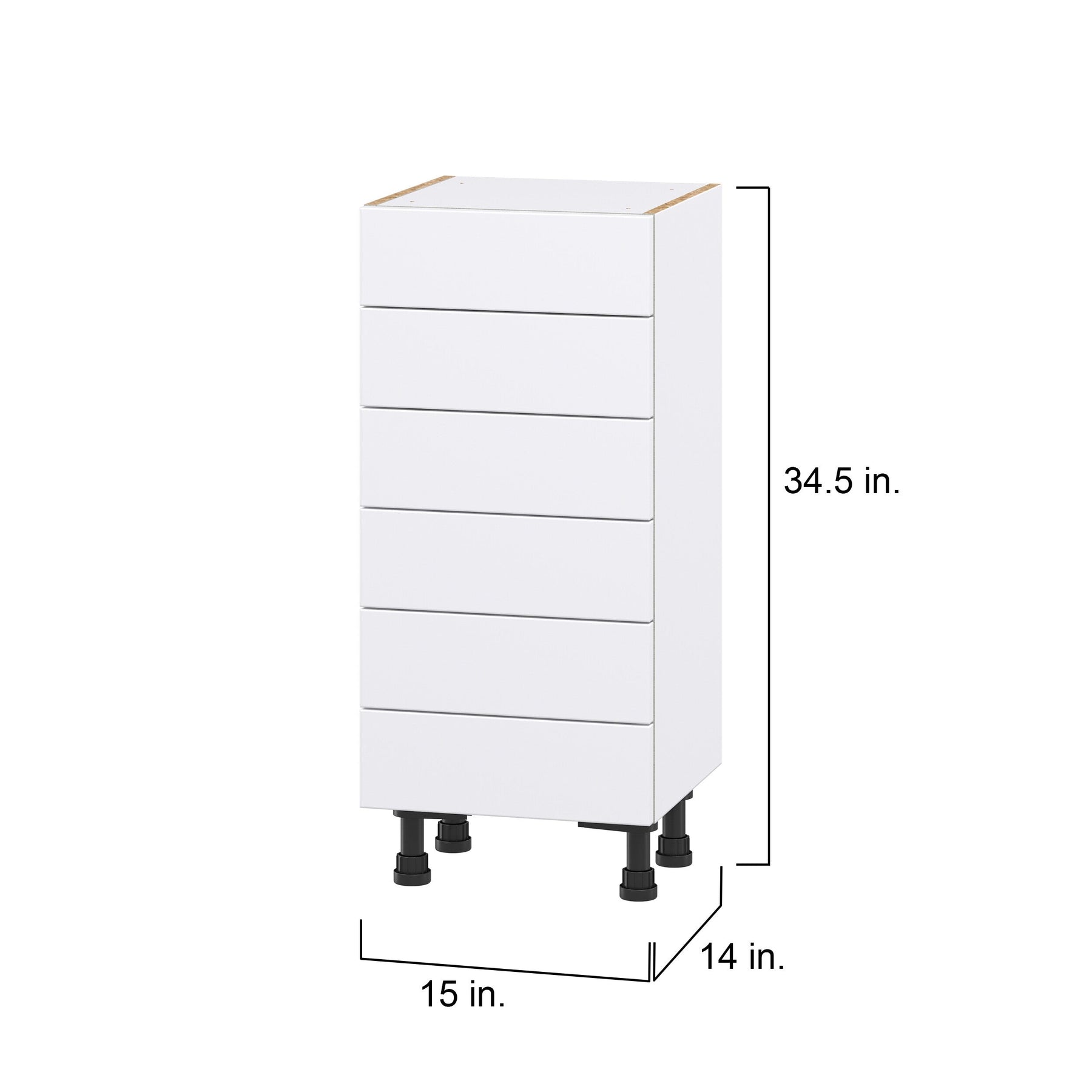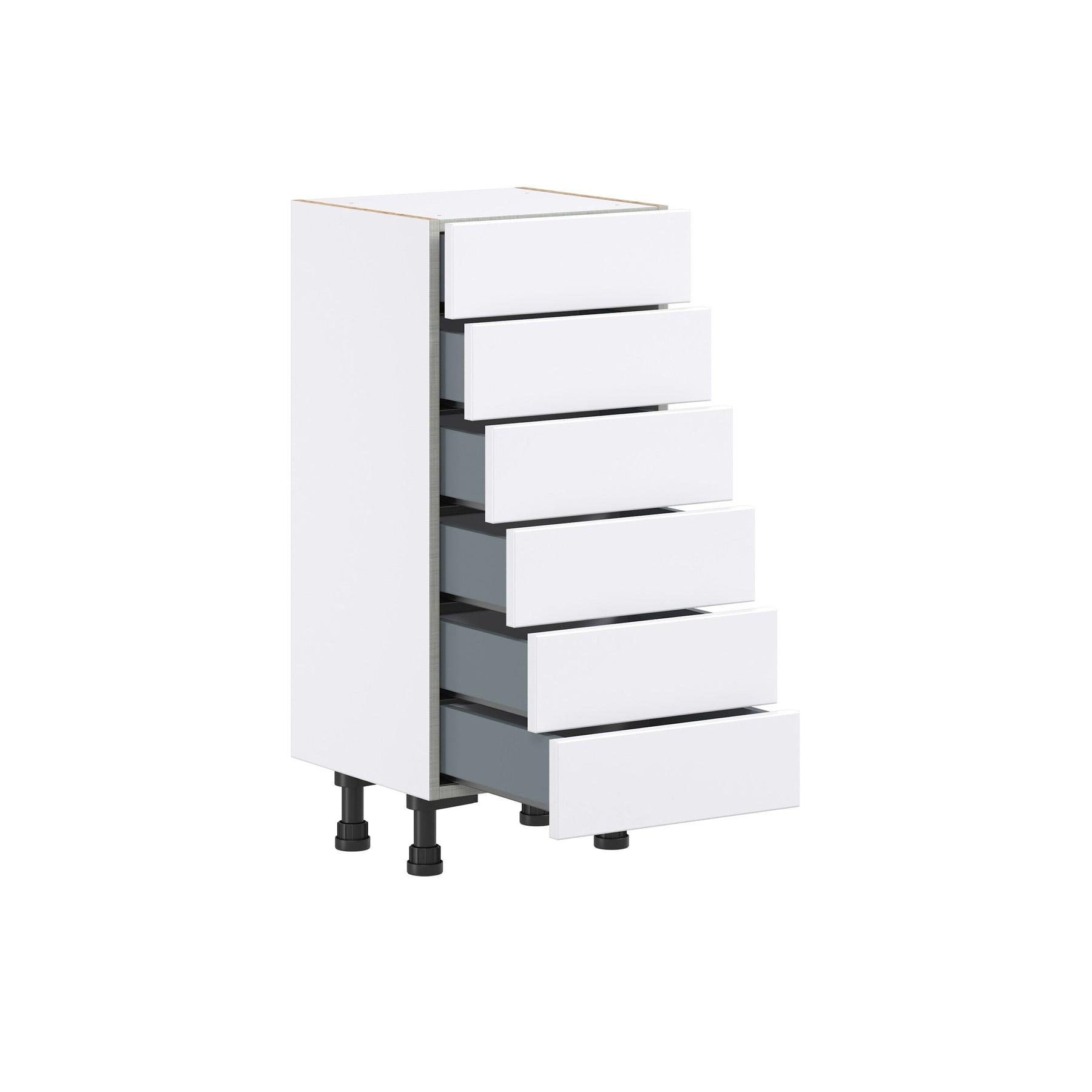 Hugo&Borg Lasalle 15-in W x 34.5-in H x 14-in D Bright White Slab 6-Drawer Base Fully Assembled Cabinet (Flat Panel Style)