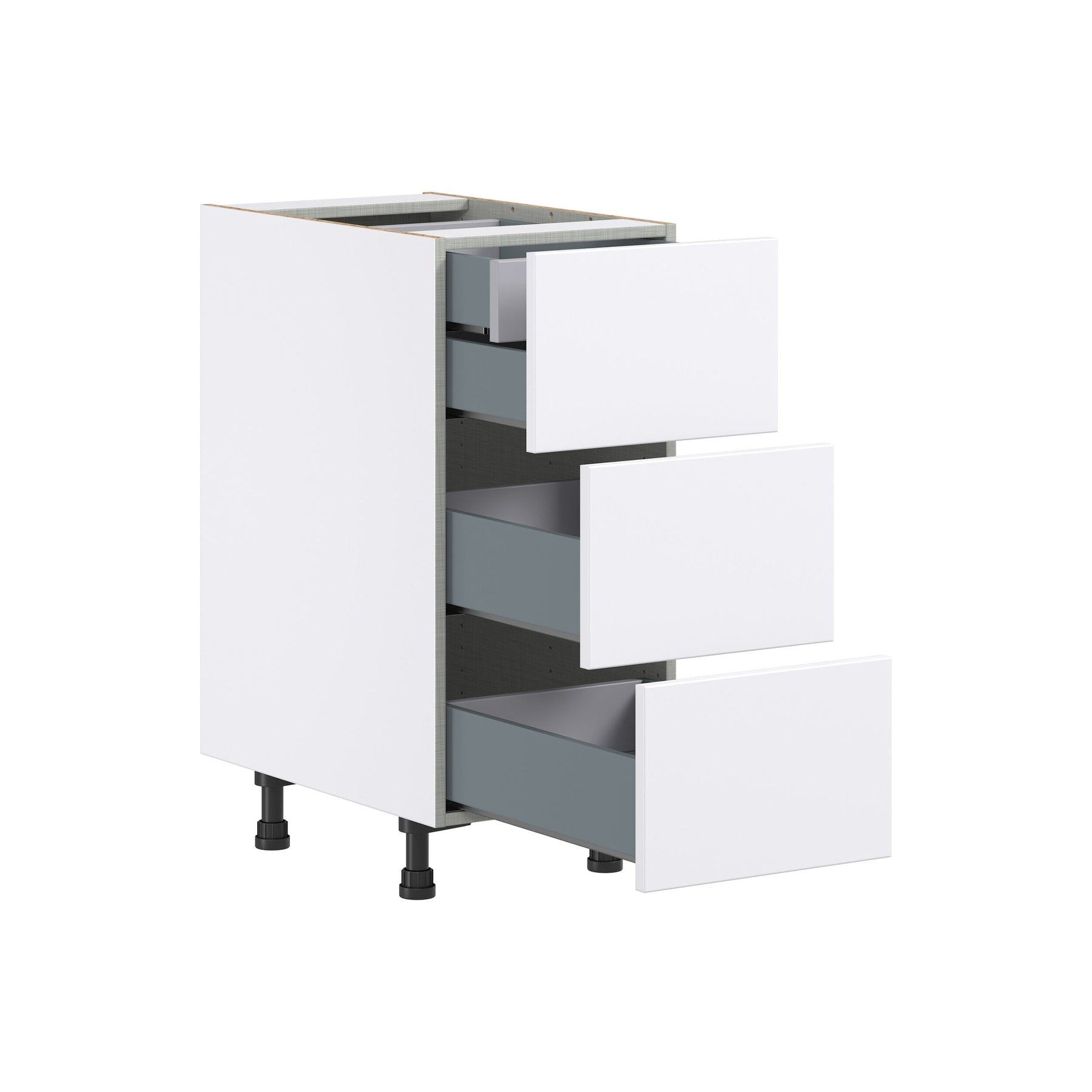 A: Yes, the cabinet includes premium soft-close technology on all drawers, preventing slamming and offering a quieter kitchen experience.