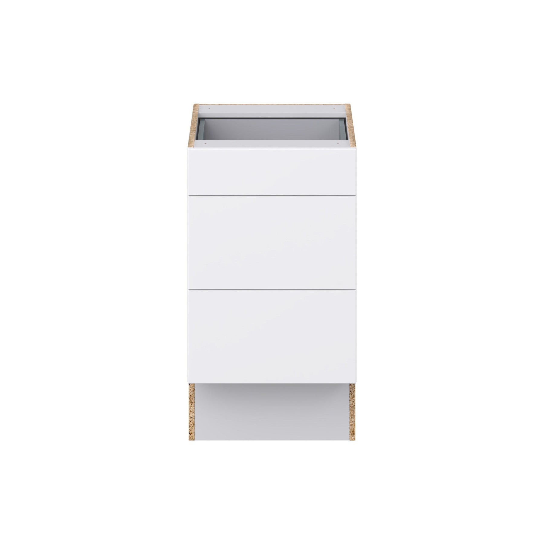The Hugo&Borg Lasalle 3-Drawer Base Cabinet offers sleek, modern storage with its bright white slab design and efficient flat panel style. Fully assembled and engineered for durability, this cabinet seamlessly integrates into any space, providing both beauty and functionality.