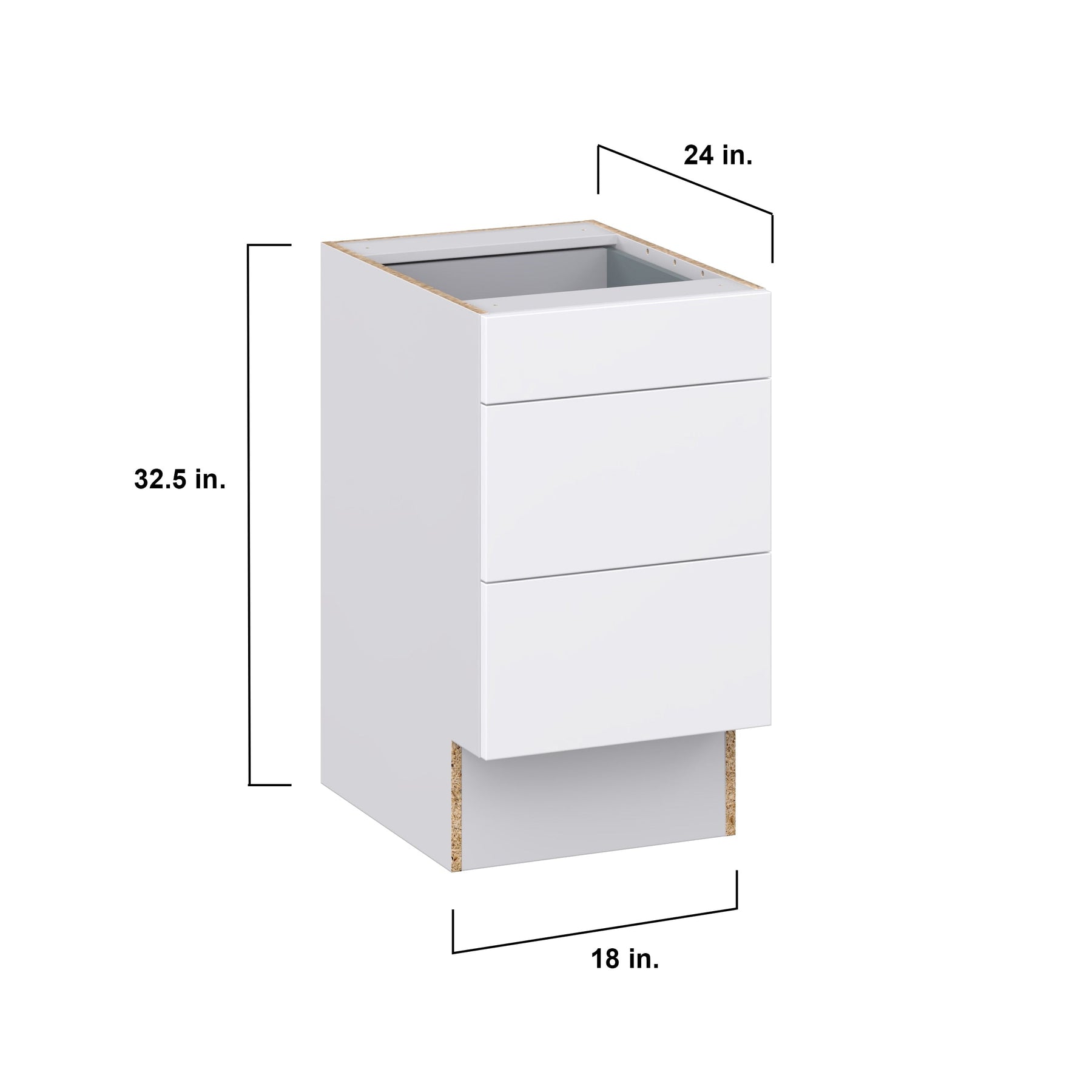 Hugo&Borg Lasalle 18-in W x 32.5-in H x 25-in D Bright White Slab 3-Drawer Base Fully Assembled Cabinet (Flat Panel Style)
