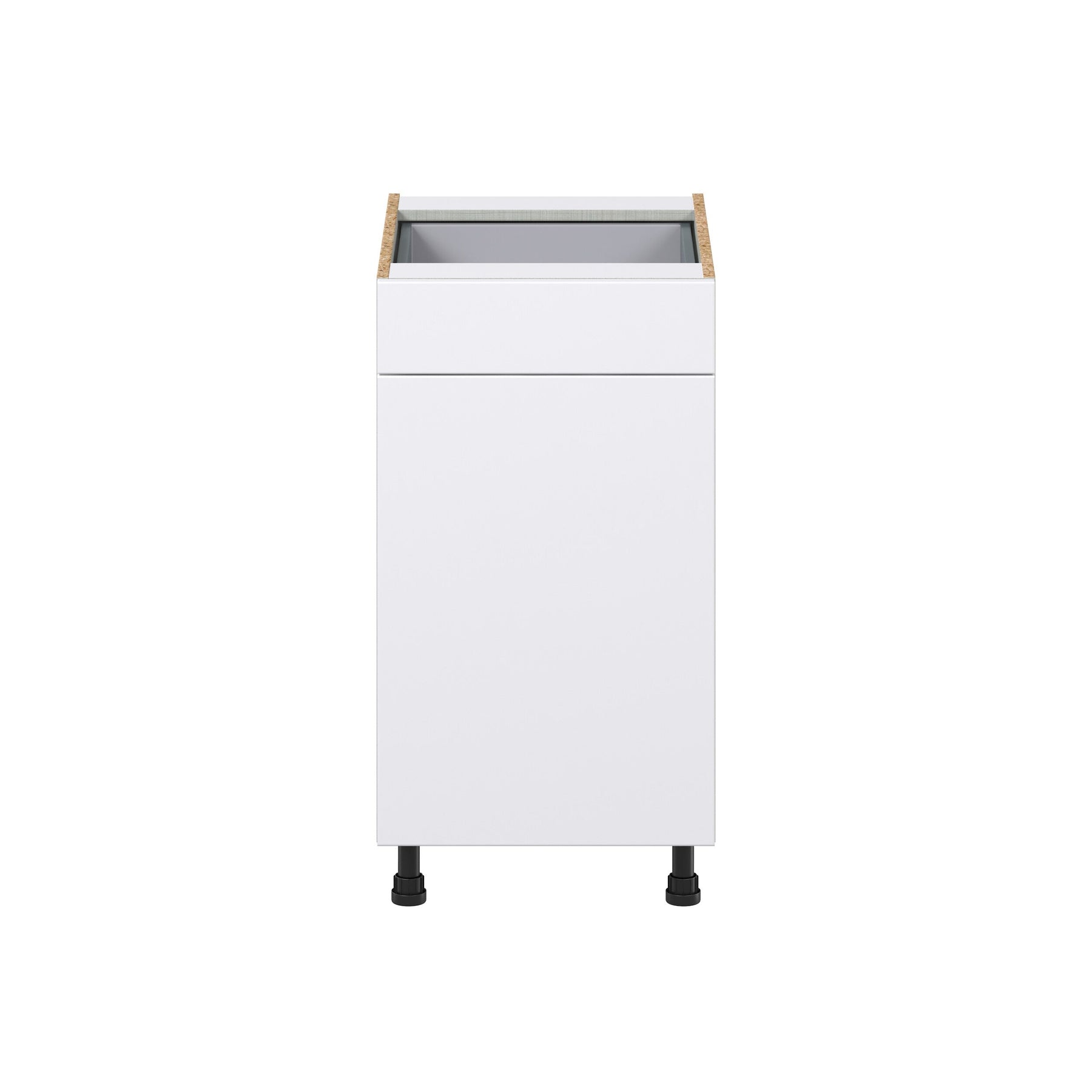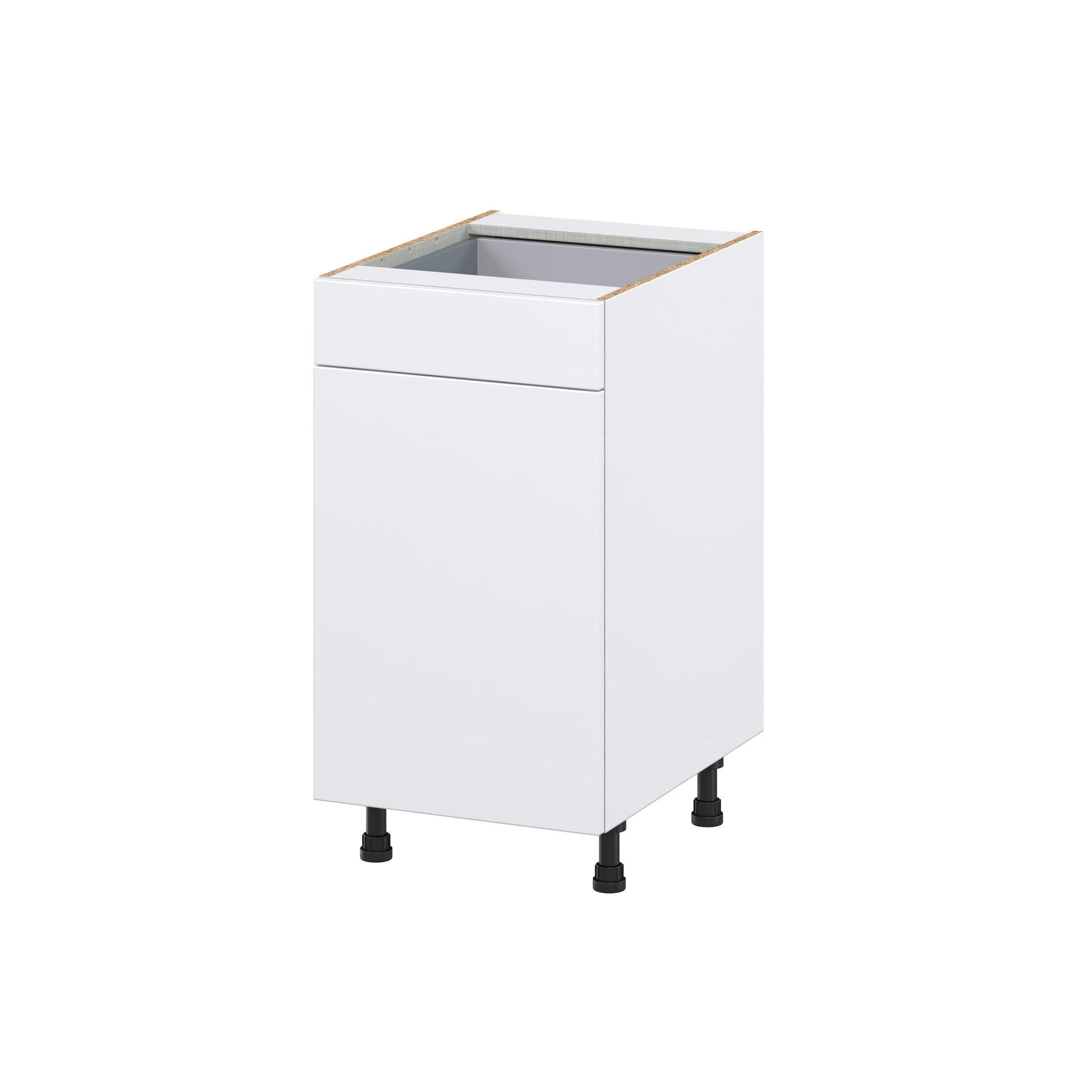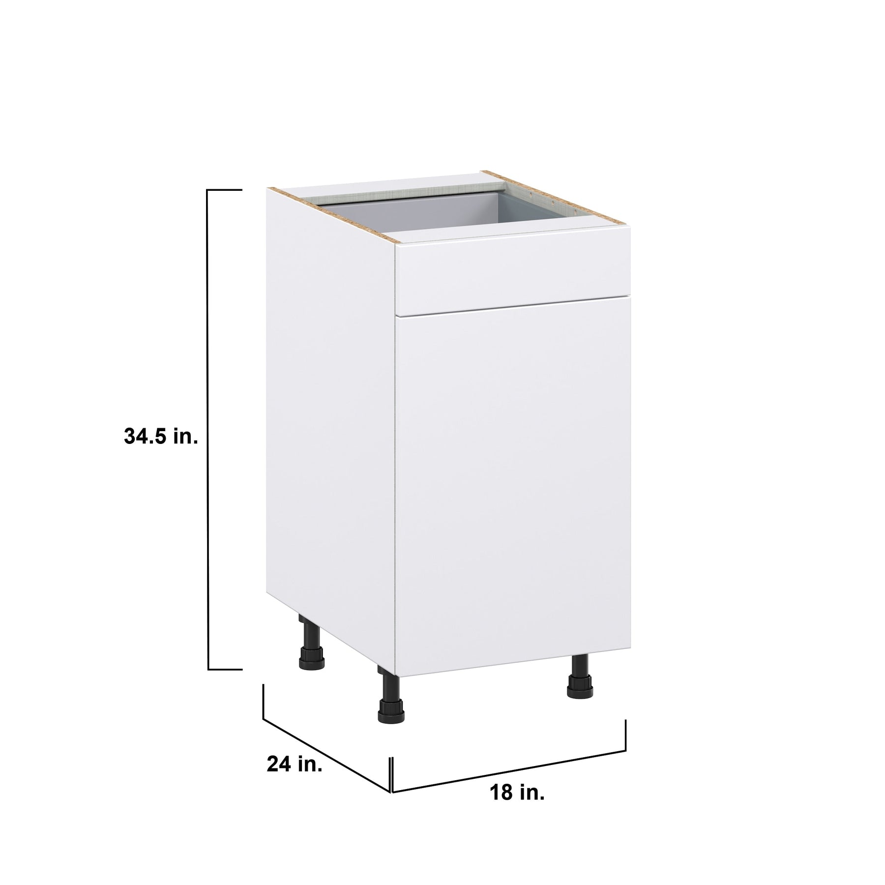 The Hugo&Borg Lasalle 18" Bright White Cabinet offers elegance and functionality for any modern kitchen or bathroom. With its sleek flat-panel design and European-style frameless construction, it ensures full access and superior storage capabilities. This fully assembled cabinet boasts a smart pull-out mechanism with durable glides and soft close features for seamless operation.