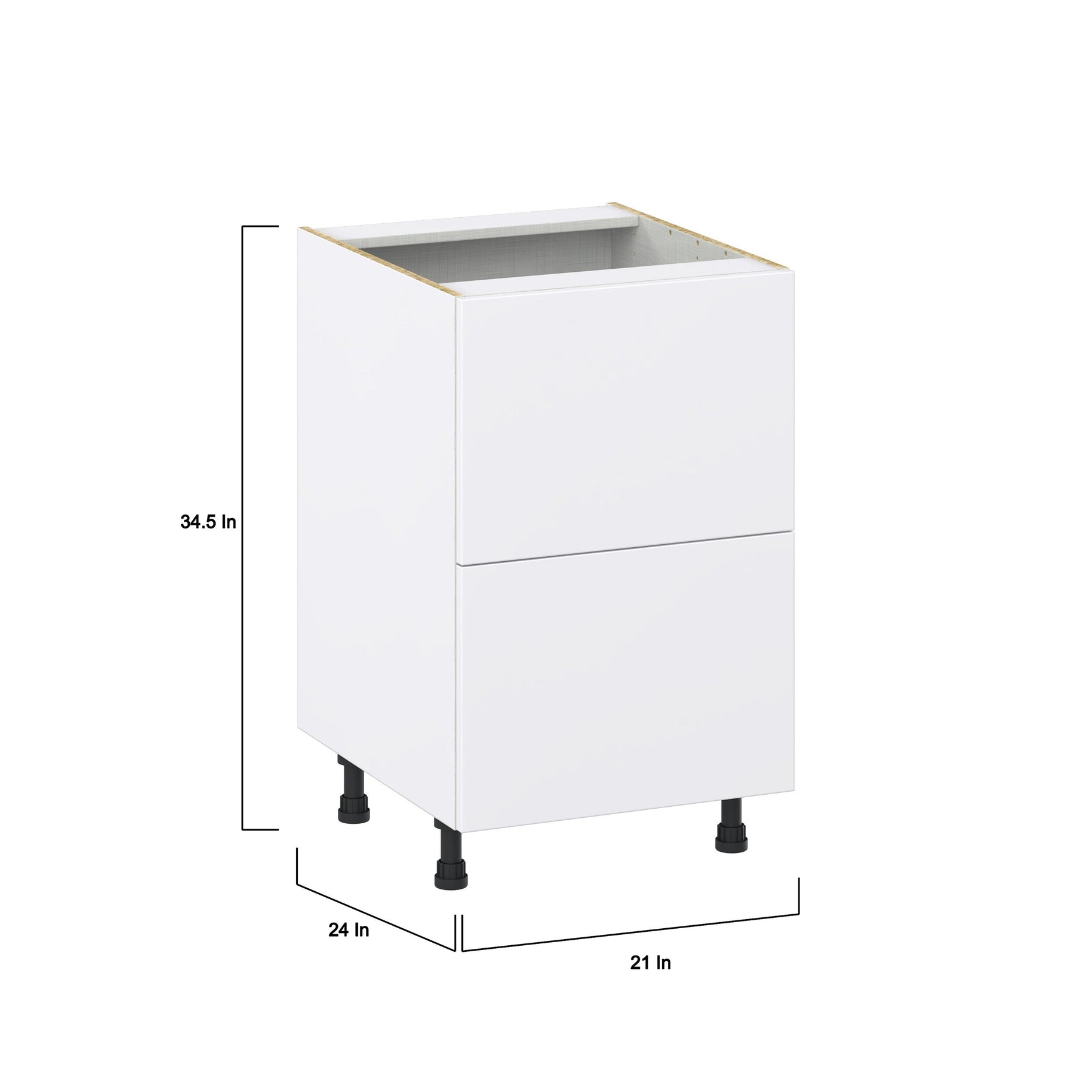 Hugo&Borg Lasalle 21-in W x 34.5-in H x 24-in D Bright White Slab 2-Drawer Base Fully Assembled Cabinet (Flat Panel Style)
