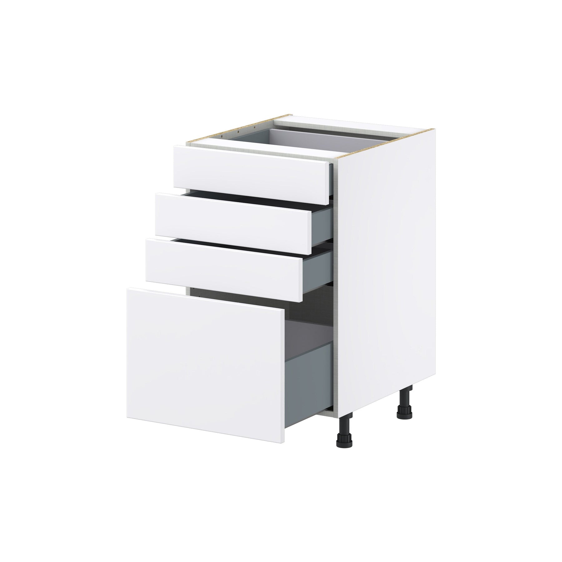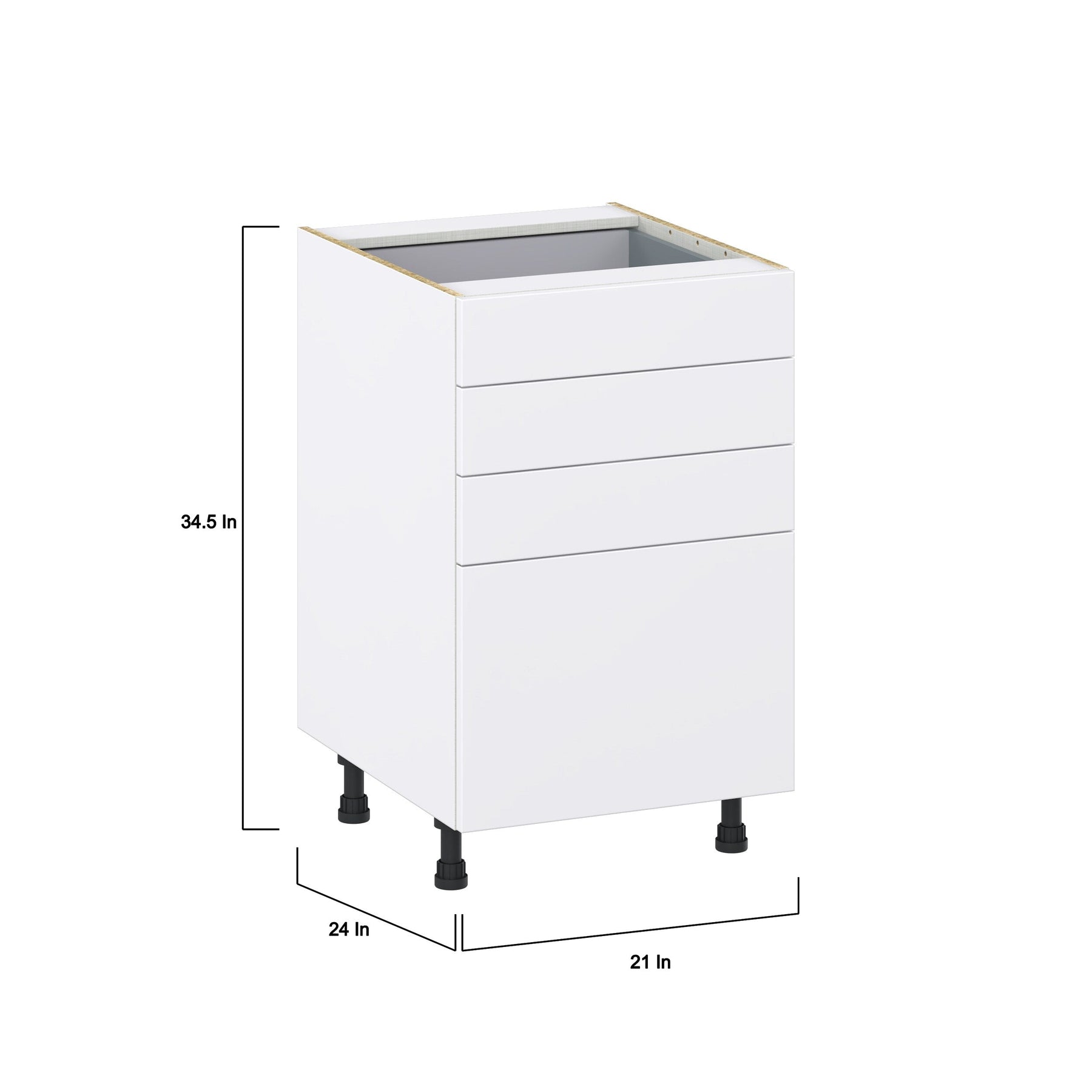 Hugo&Borg Lasalle 21-in W x 34.5-in H x 24-in D Bright White Slab 4-Drawer Base Fully Assembled Cabinet (Flat Panel Style)