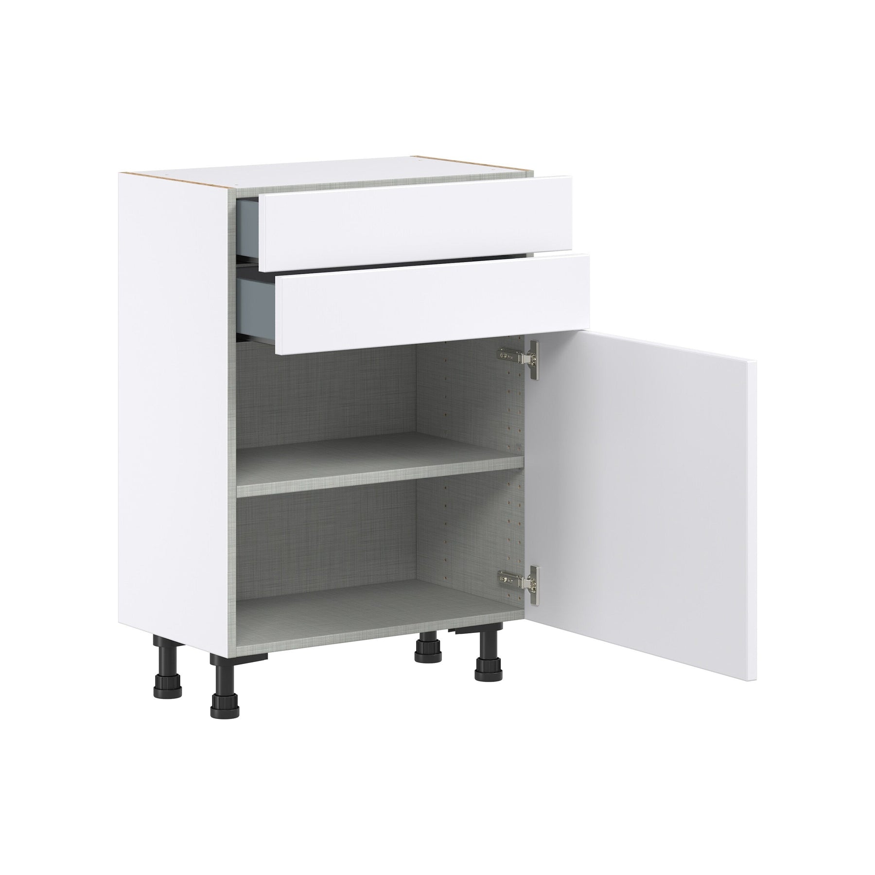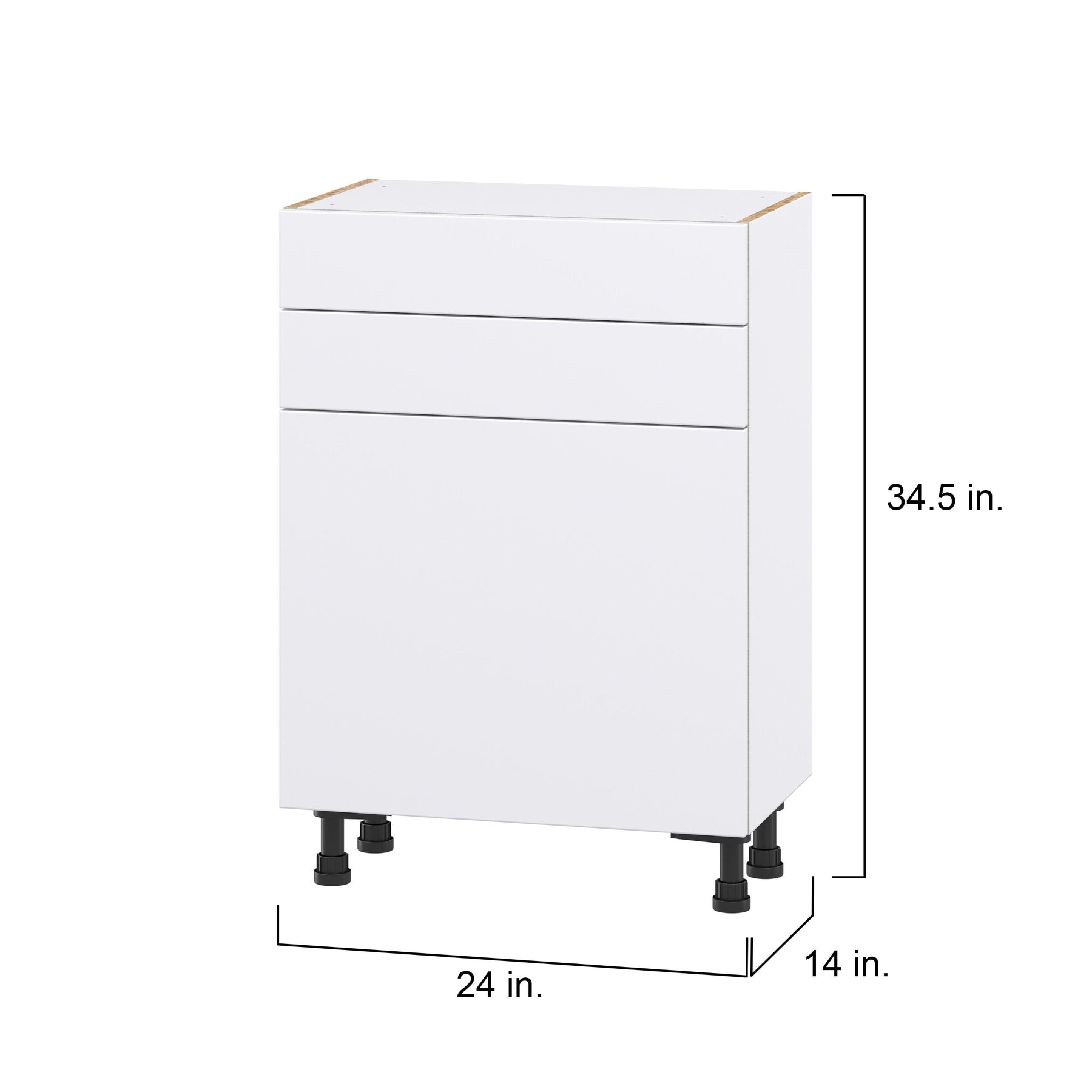 Elevate your space with the Hugo&Borg Lasalle 24" bright white base cabinet. This fully assembled, modern flat panel design offers ample storage with two soft-close drawers and a door. Engineered wood construction ensures durability and elegance, providing a seamless addition to any kitchen or bathroom.