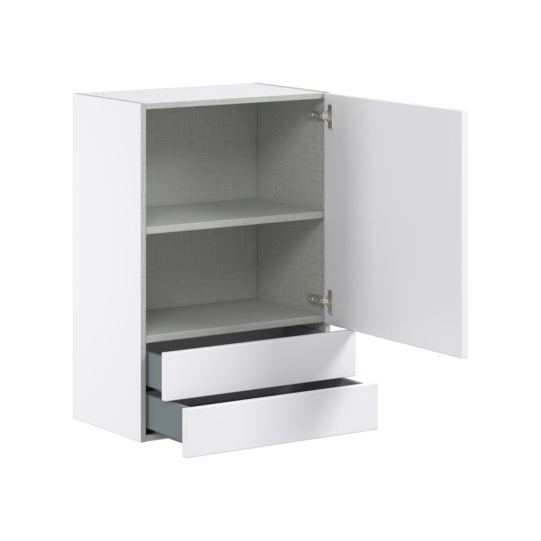 • Modern Design: Sleek, flat panel door style with adjustable shelves and a contemporary linen pattern interior.