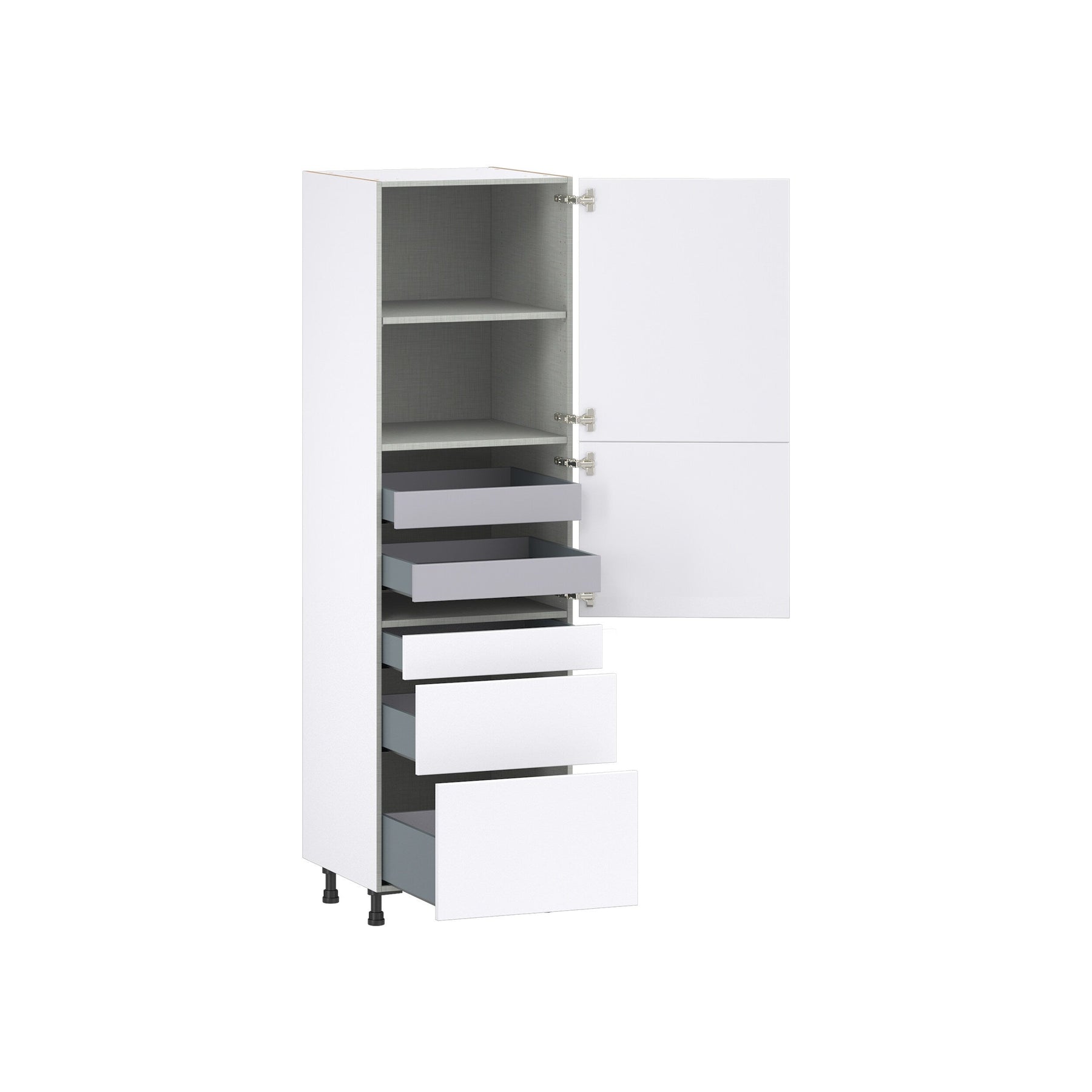 Hugo&Borg Lasalle 24-in W x 84.5-in H x 24-in D Bright White Slab 5-Drawer Pantry Fully Assembled Cabinet (Flat Panel Slab Style)