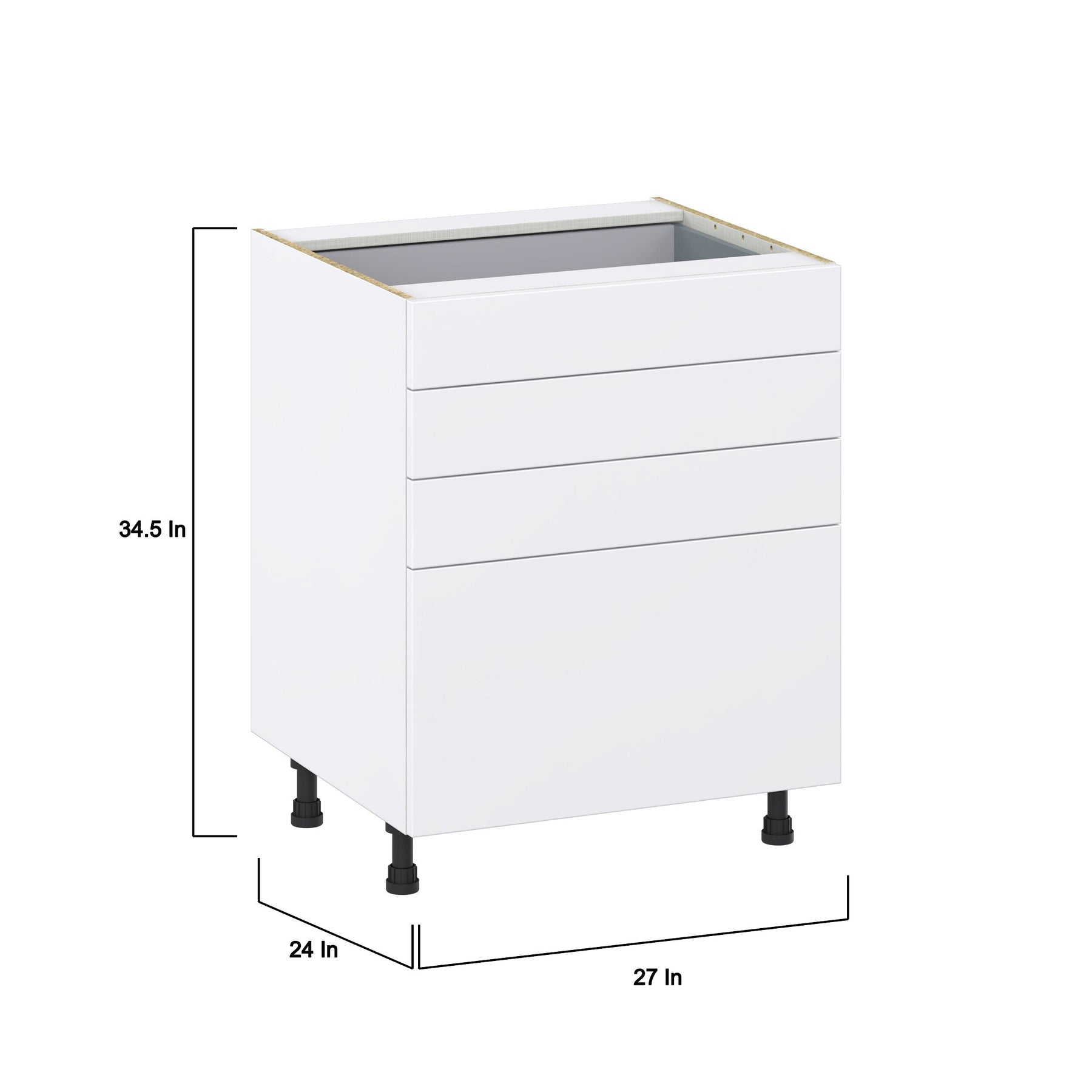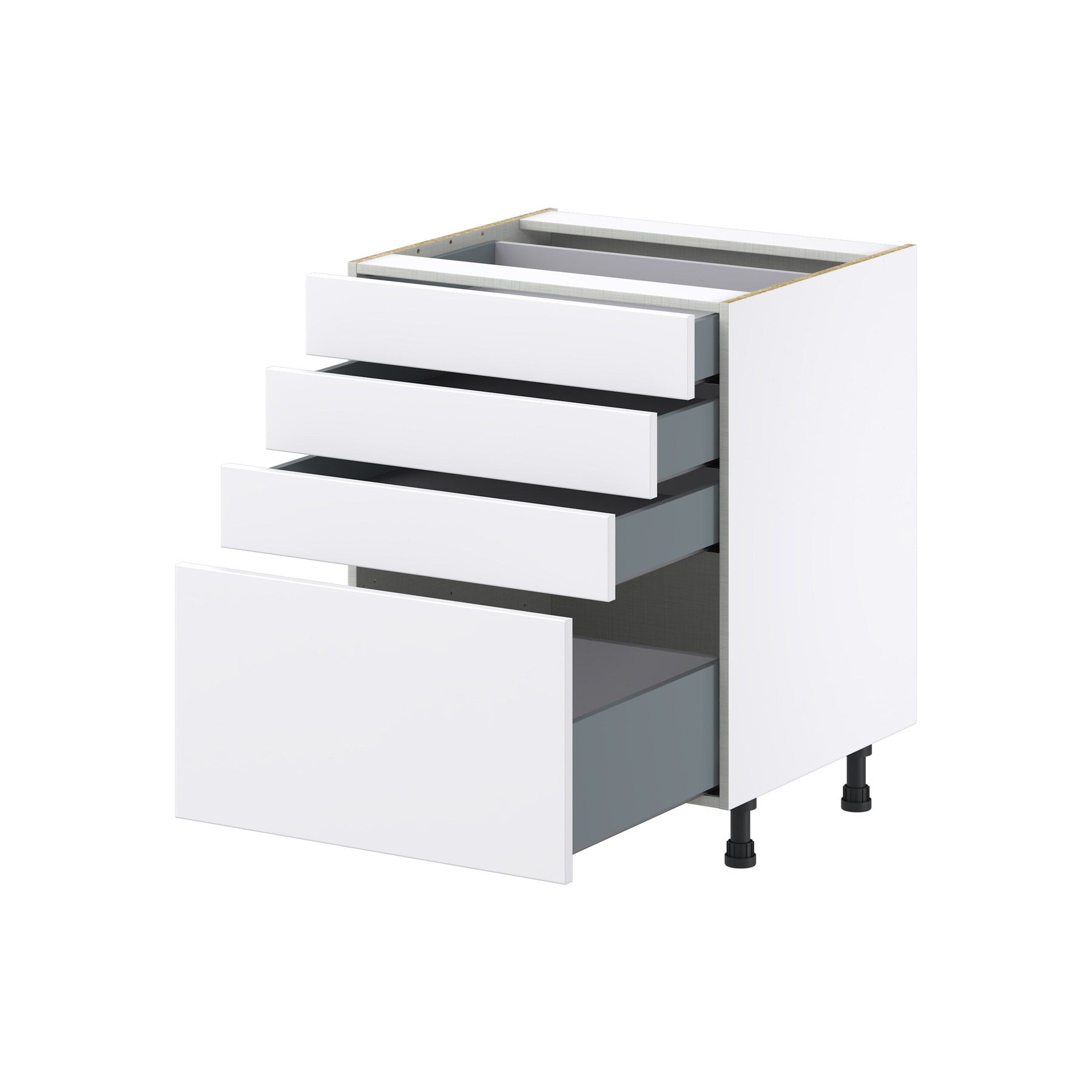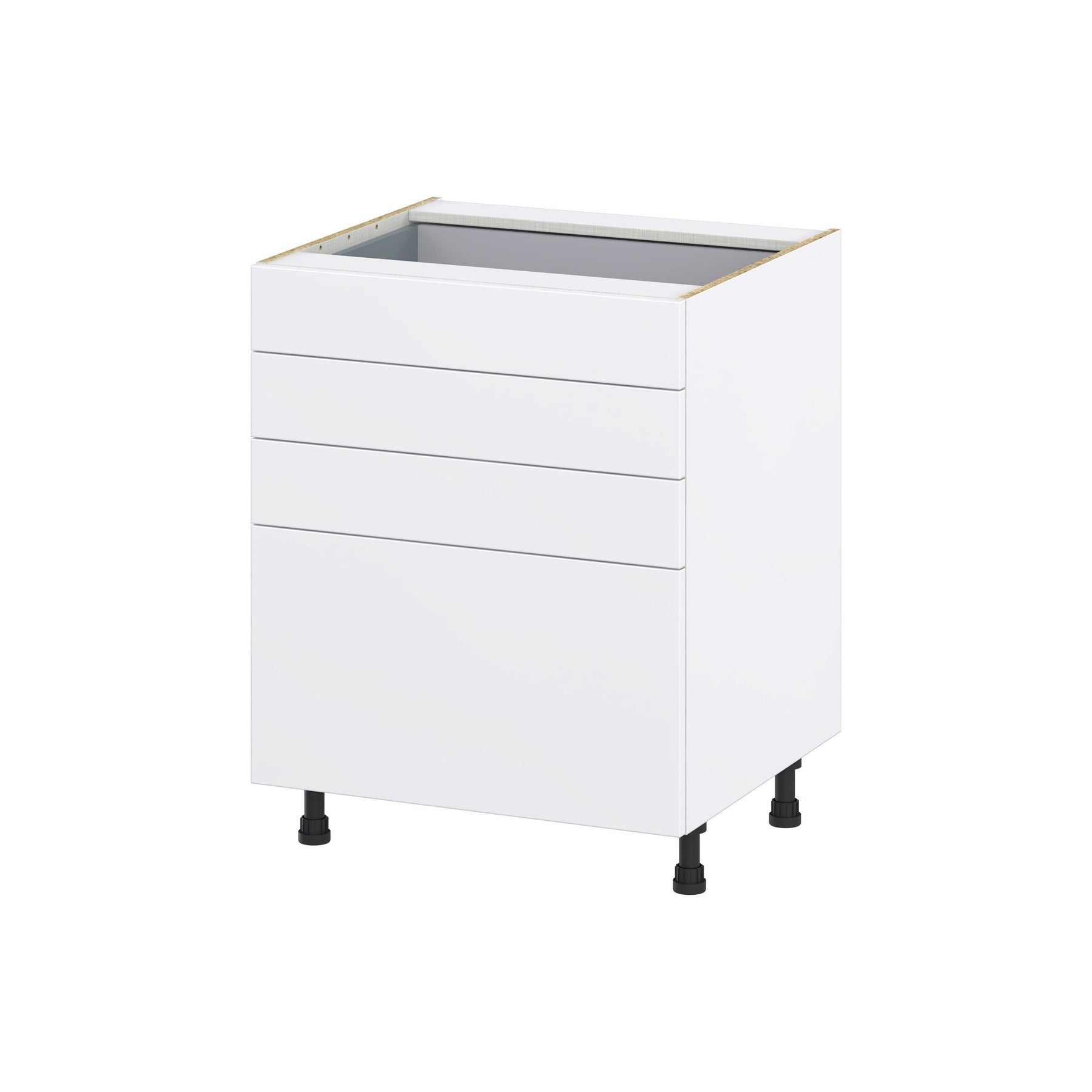 Hugo&Borg Lasalle 27-in W x 34.5-in H x 24-in D Bright White Slab 4-Drawer Base Fully Assembled Cabinet (Flat Panel Style)