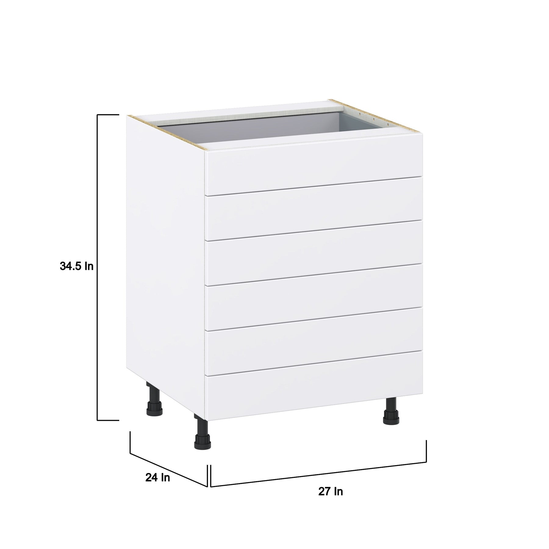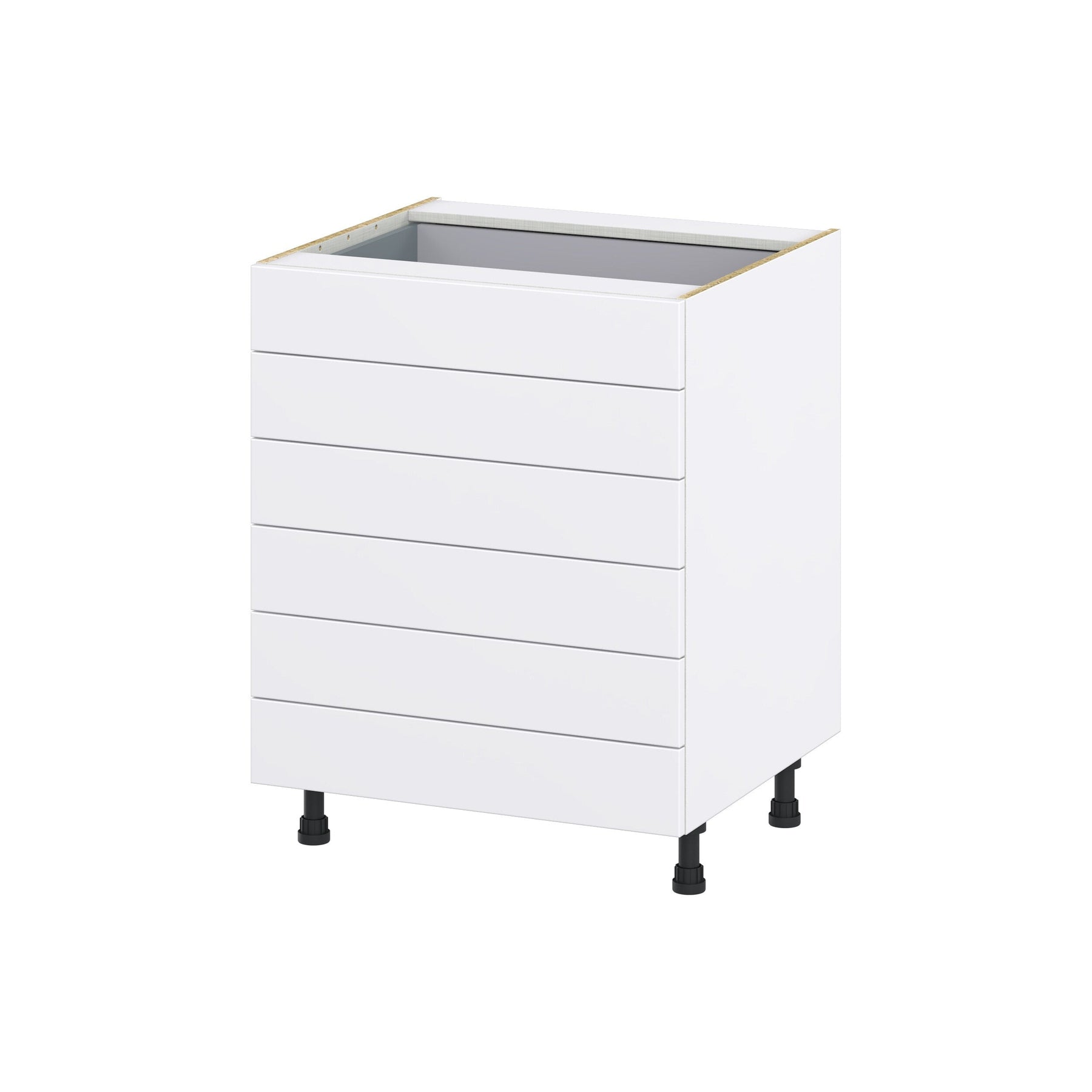 Hugo&Borg Lasalle 27-in W x 34.5-in H x 24-in D Bright White Slab 6-Drawer Base Fully Assembled Cabinet (Flat Panel Style)