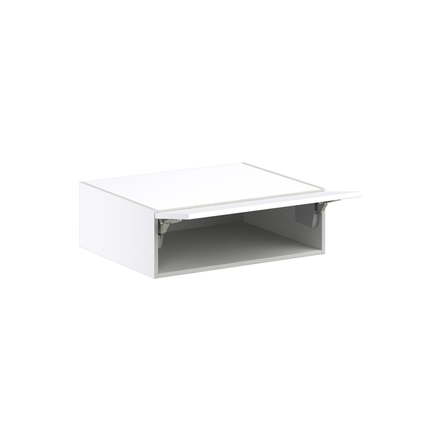 A: The cabinet door features a soft-close mechanism that allows it to pivot up smoothly and close silently without slamming.