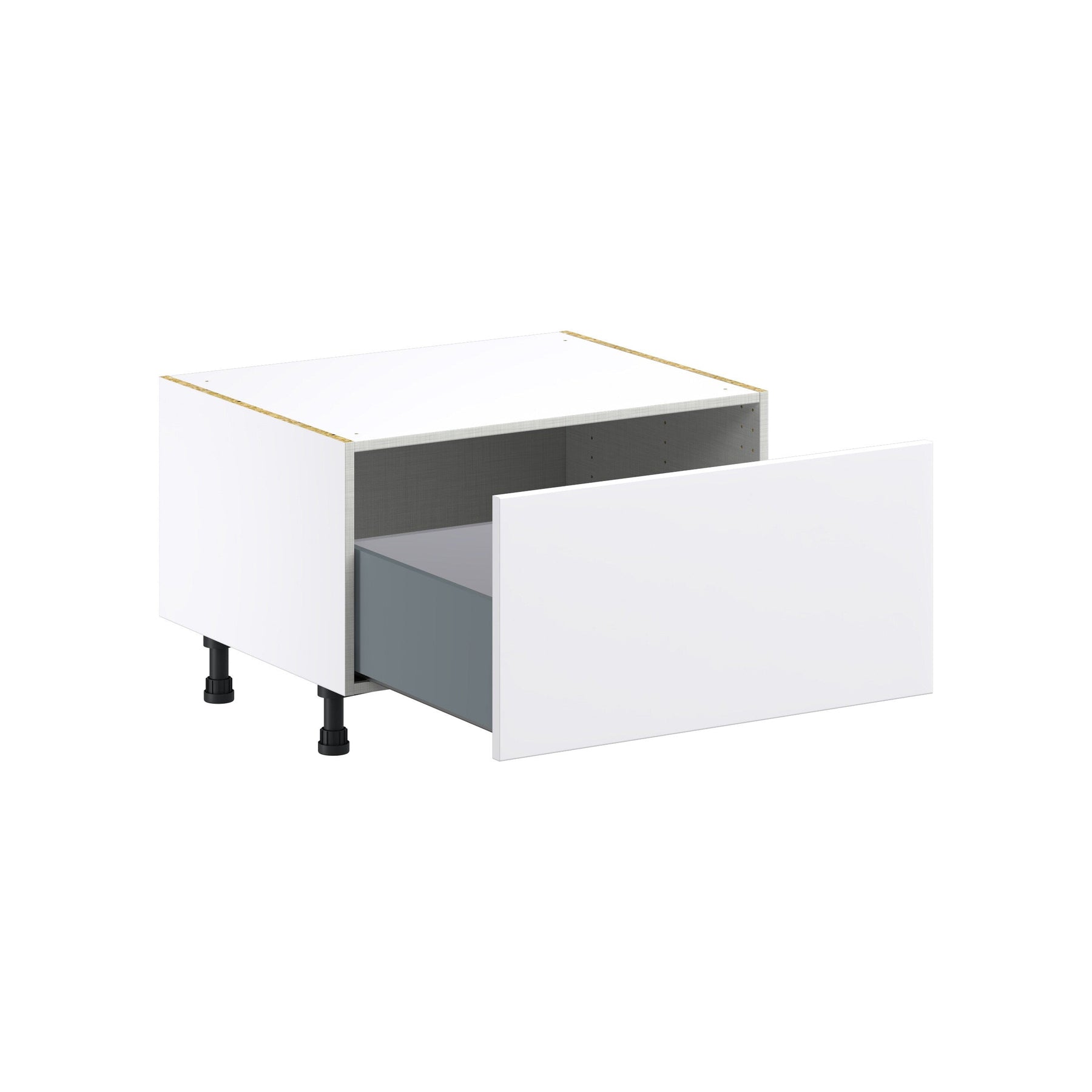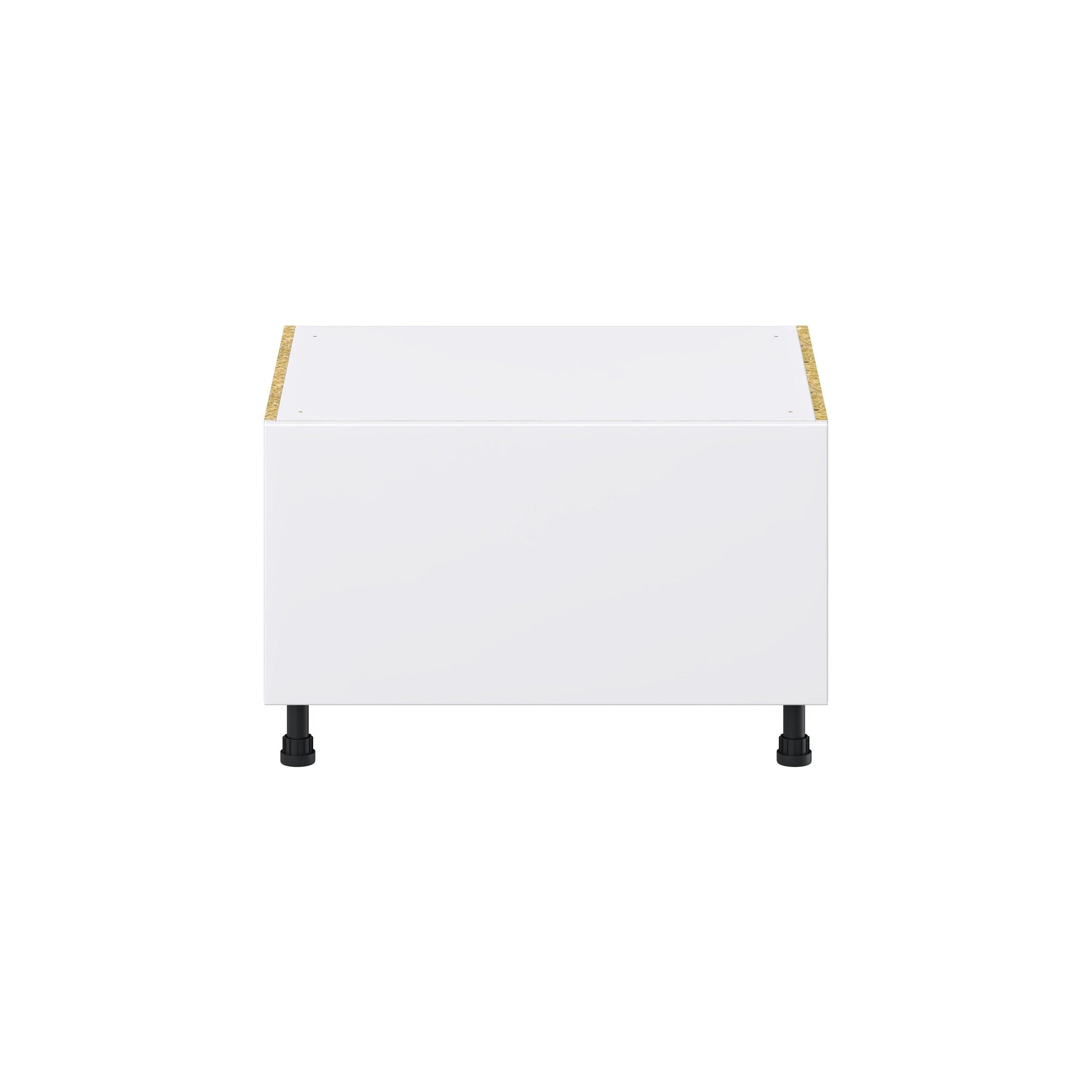 The Hugo&Borg Lasalle 30" Bright White 1-Drawer Base Cabinet brings sleek European-style frameless design to your space, offering up to 20% more storage. Fully assembled and featuring a modern flat panel style, this cabinet ensures durability with its metal-sided soft-close drawer construction, perfect for contemporary kitchens or bathroom renovations.