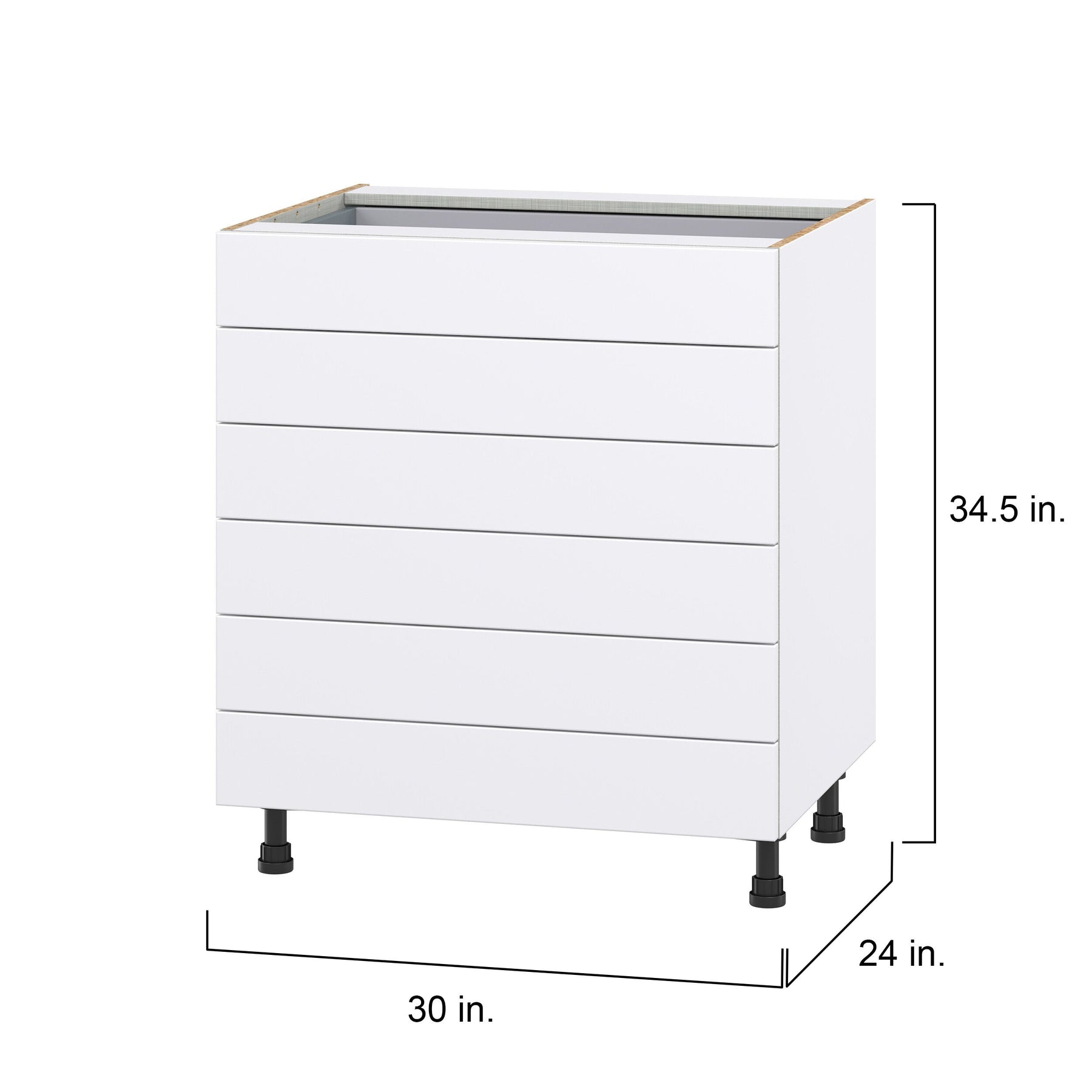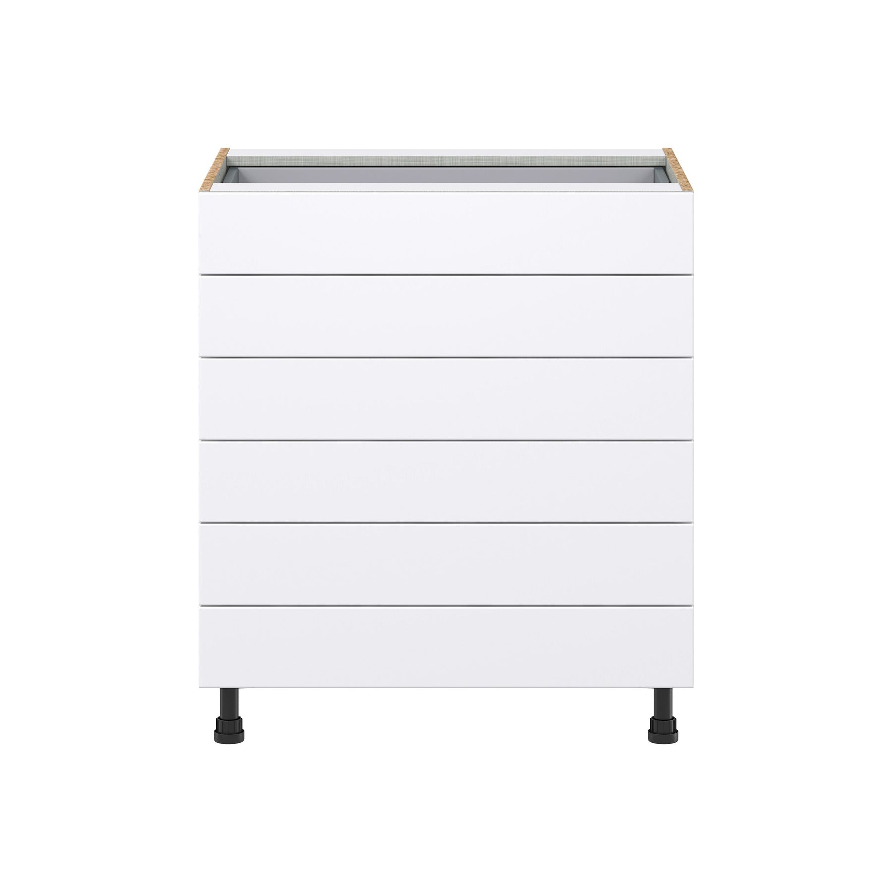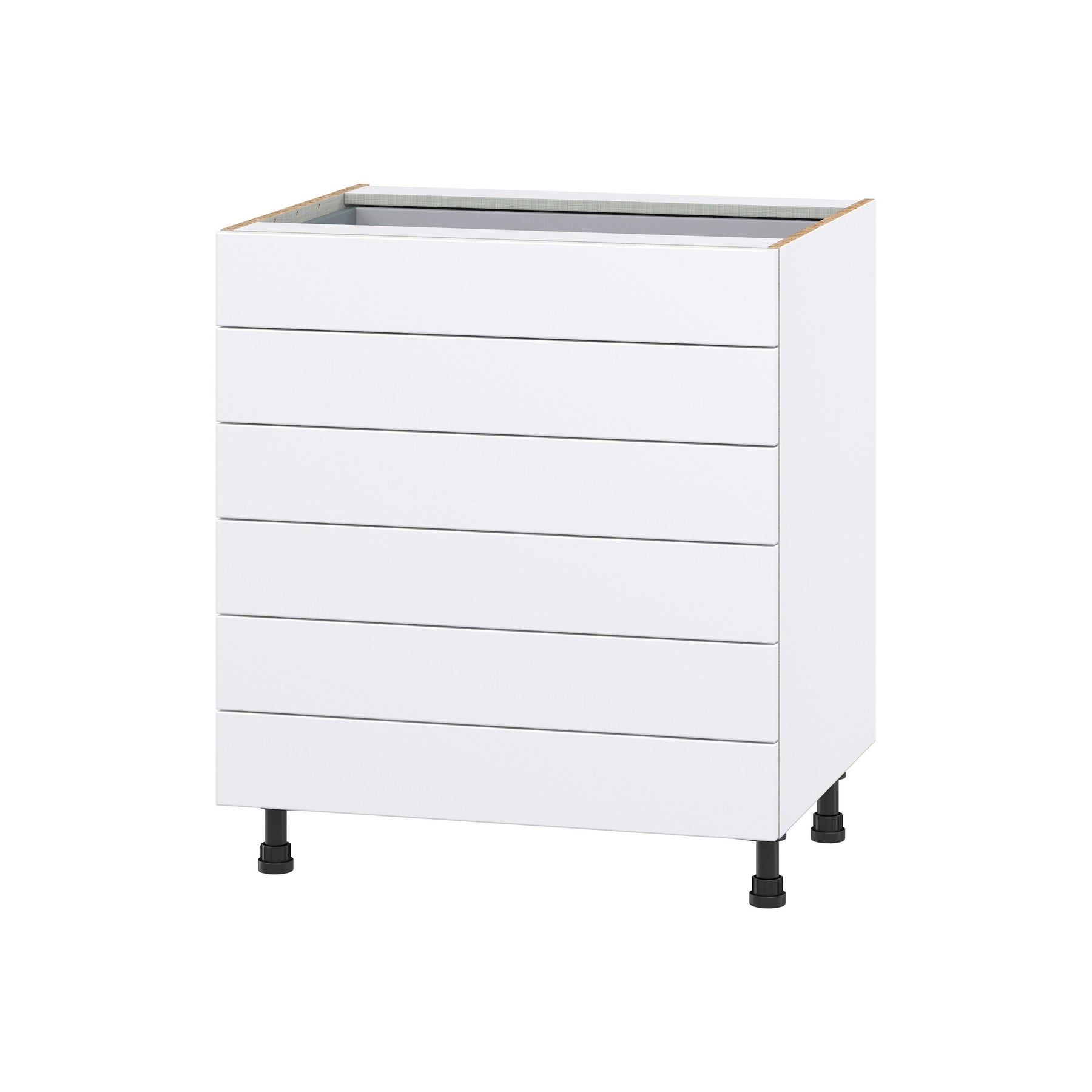 Hugo&Borg Lasalle 30-in W x 34.5-in H x 24-in D Bright White Slab 6-Drawer Base Fully Assembled Cabinet (Flat Panel Style)