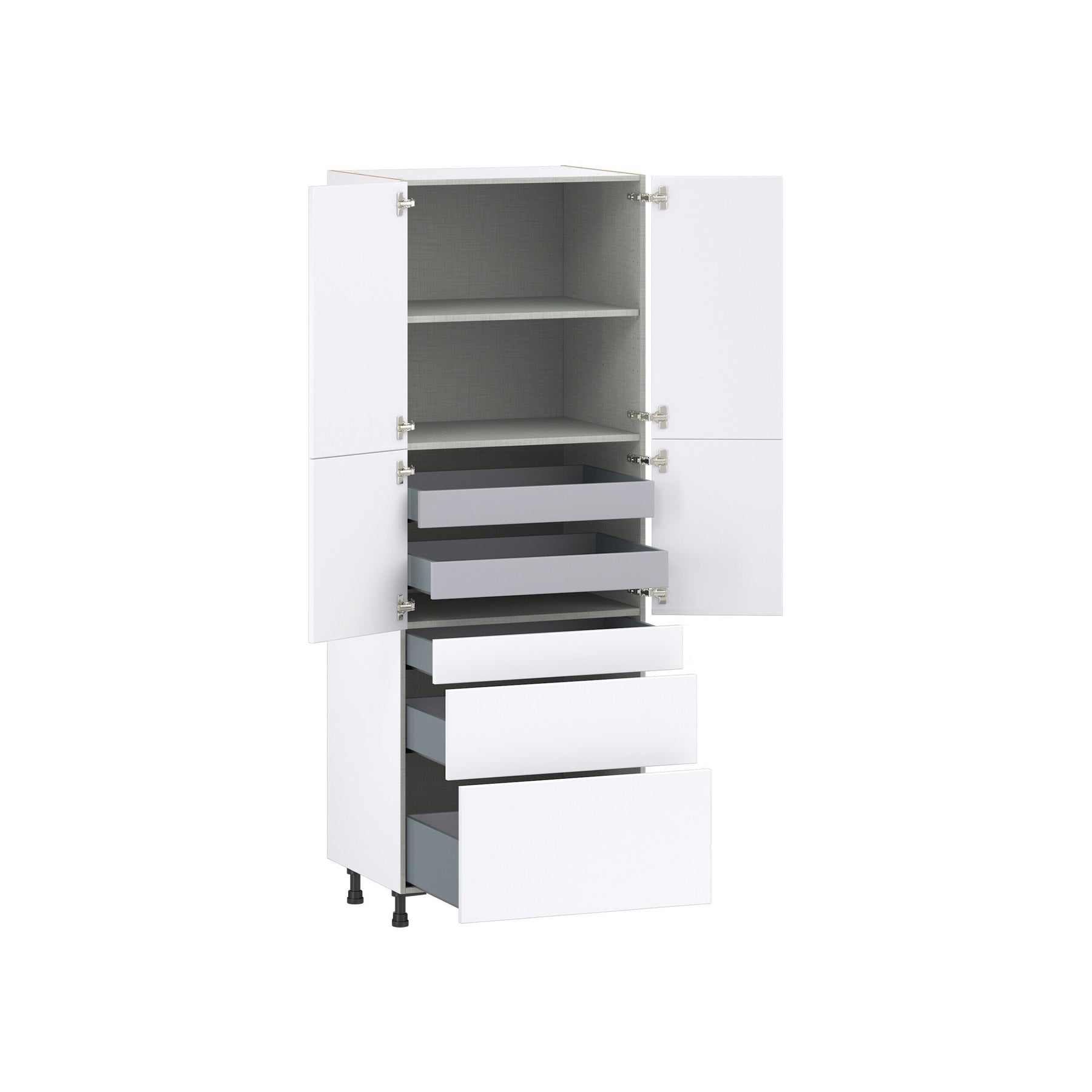 Hugo&Borg Lasalle 30-in W x 84.5-in H x 24-in D Bright White Slab 5-Drawers Pantry Fully Assembled Cabinet (Flat Panel Slab Style)