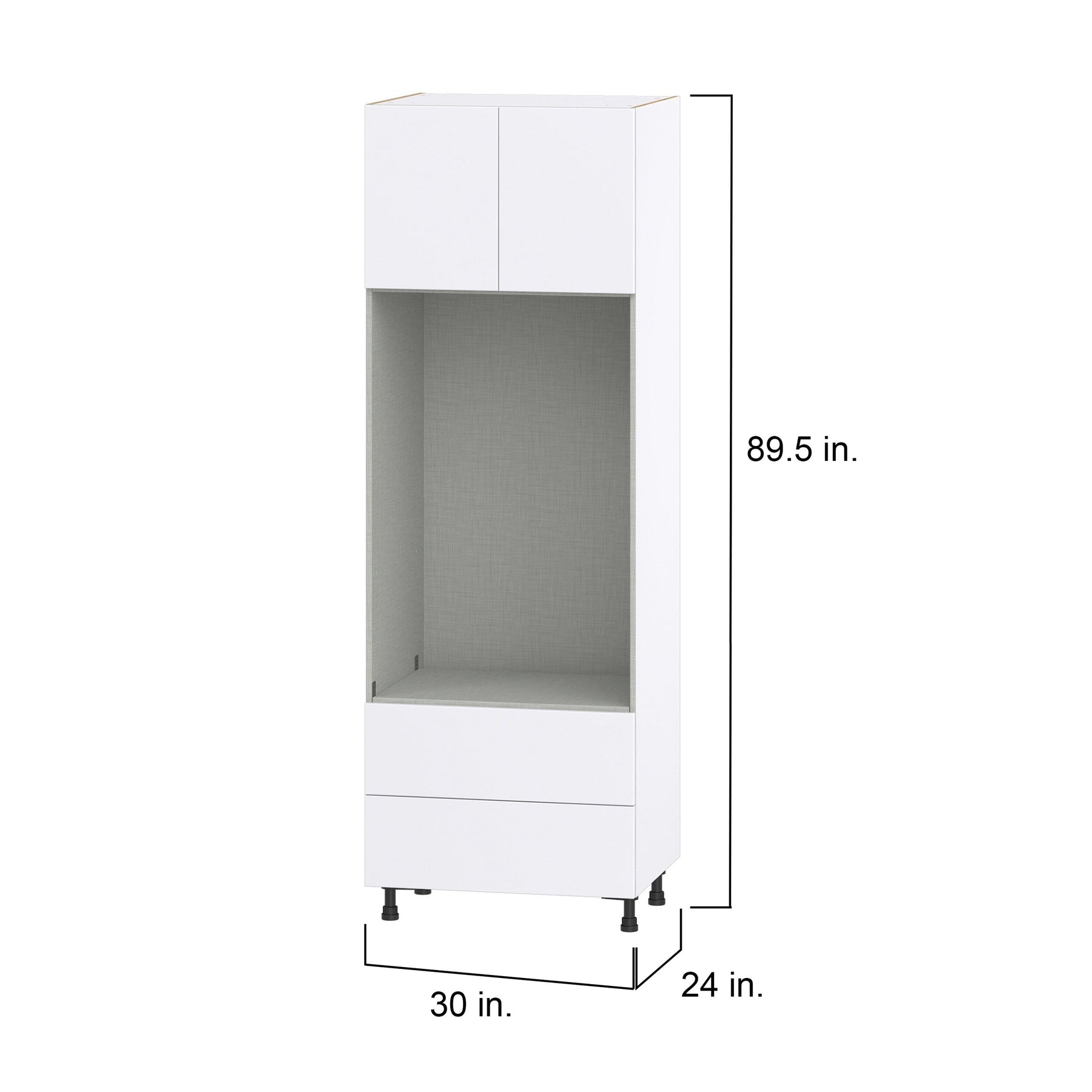 Hugo&Borg Lasalle 30-in W x 89.5-in H x 24-in D Bright White Slab 2-Drawers Microwave Pantry Fully Assembled Cabinet (Flat Panel Slab Style)