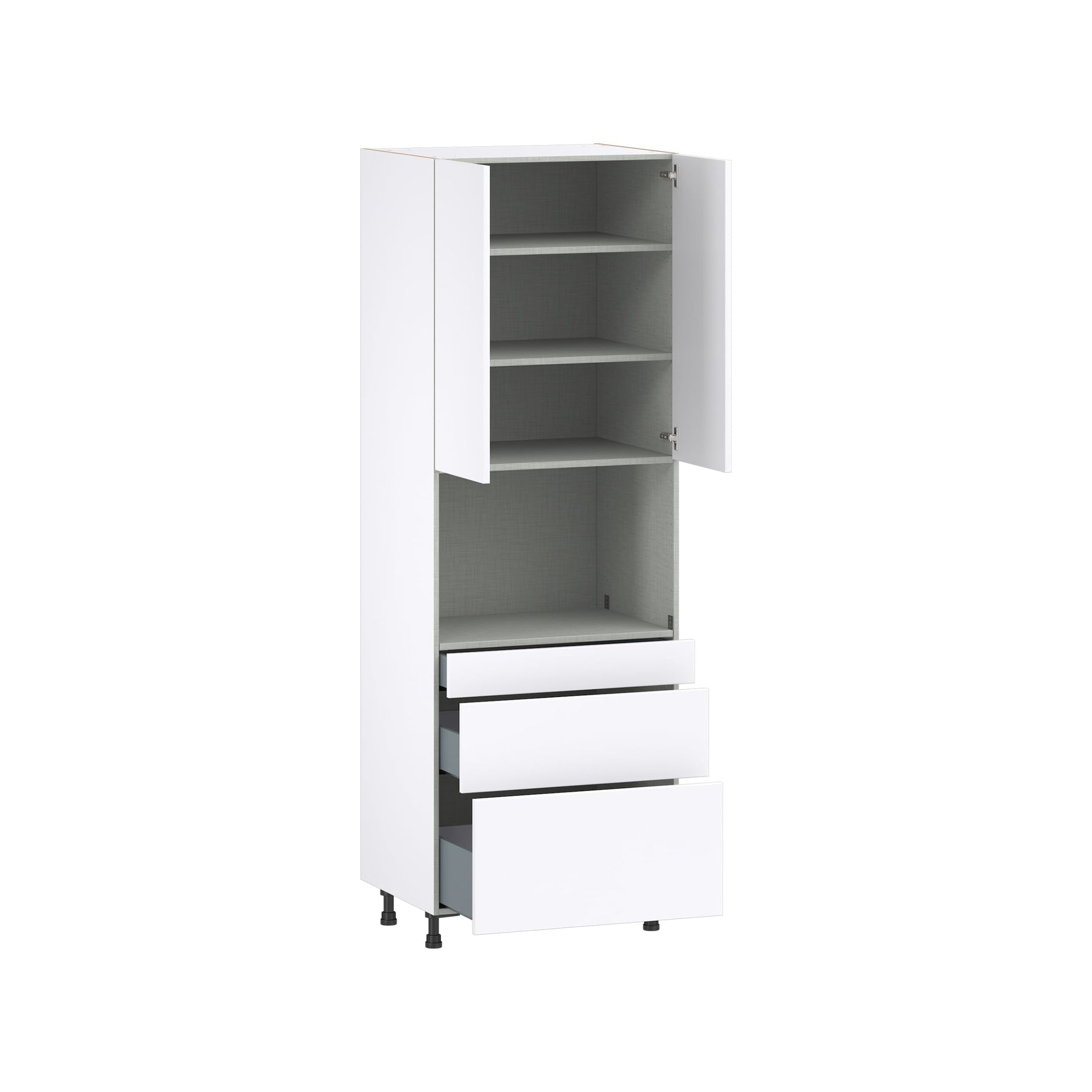Hugo&Borg Lasalle 30-in W x 89.5-in H x 24-in D Bright White Slab 3-Drawers Pantry Fully Assembled Cabinet (Flat Panel Slab Style)