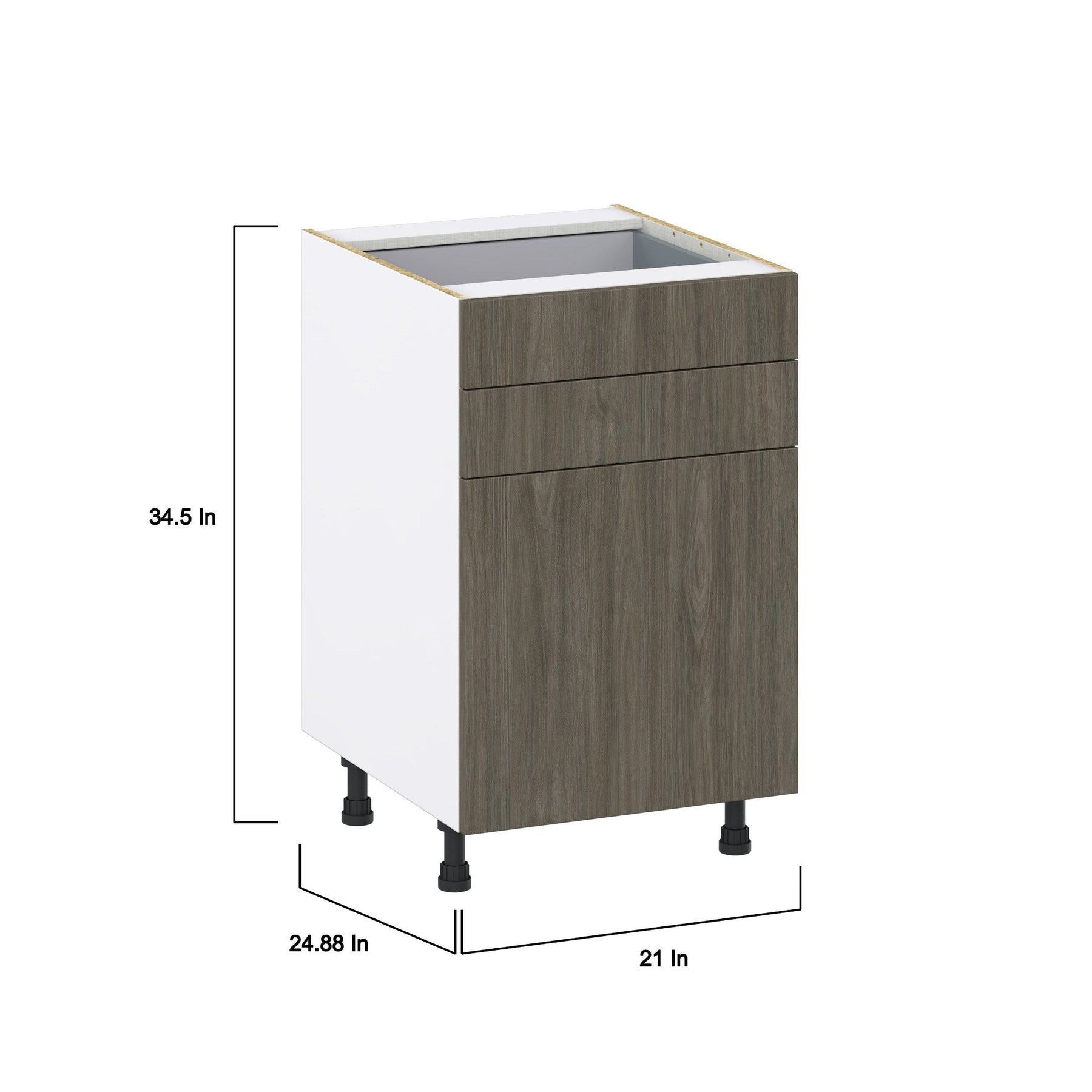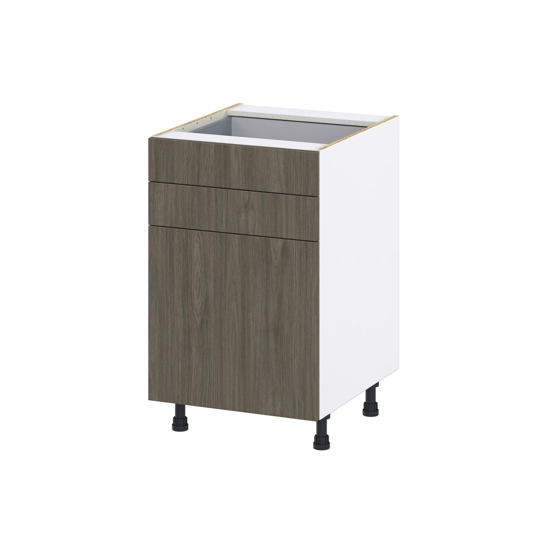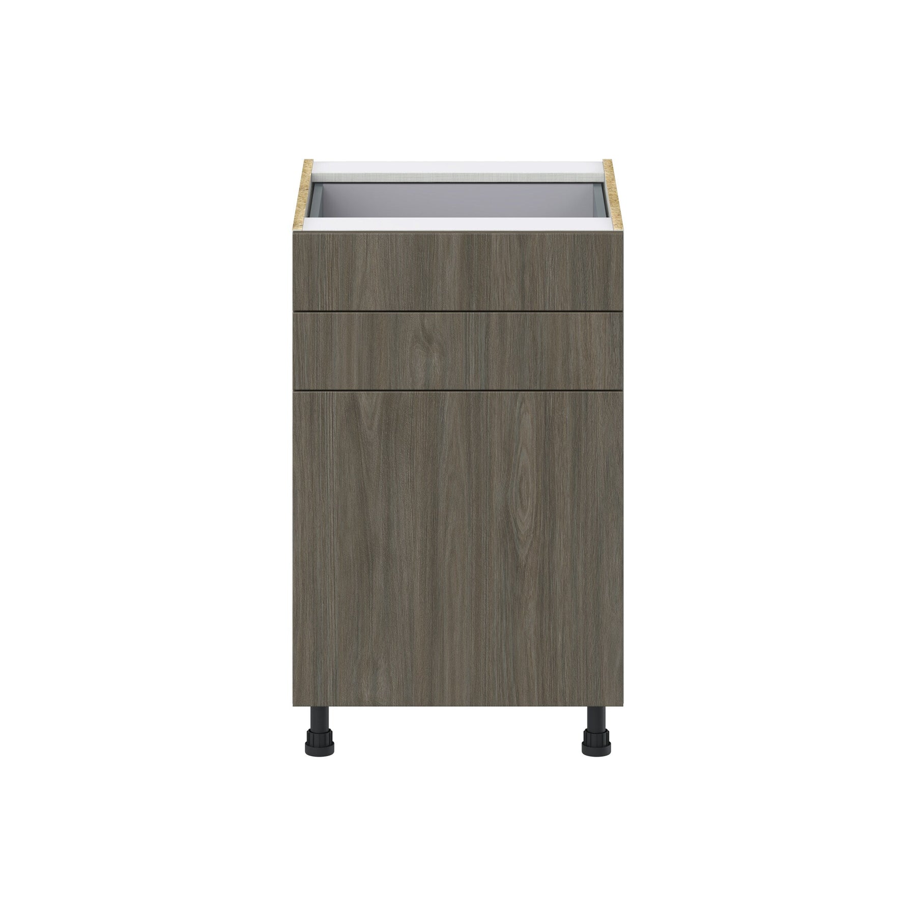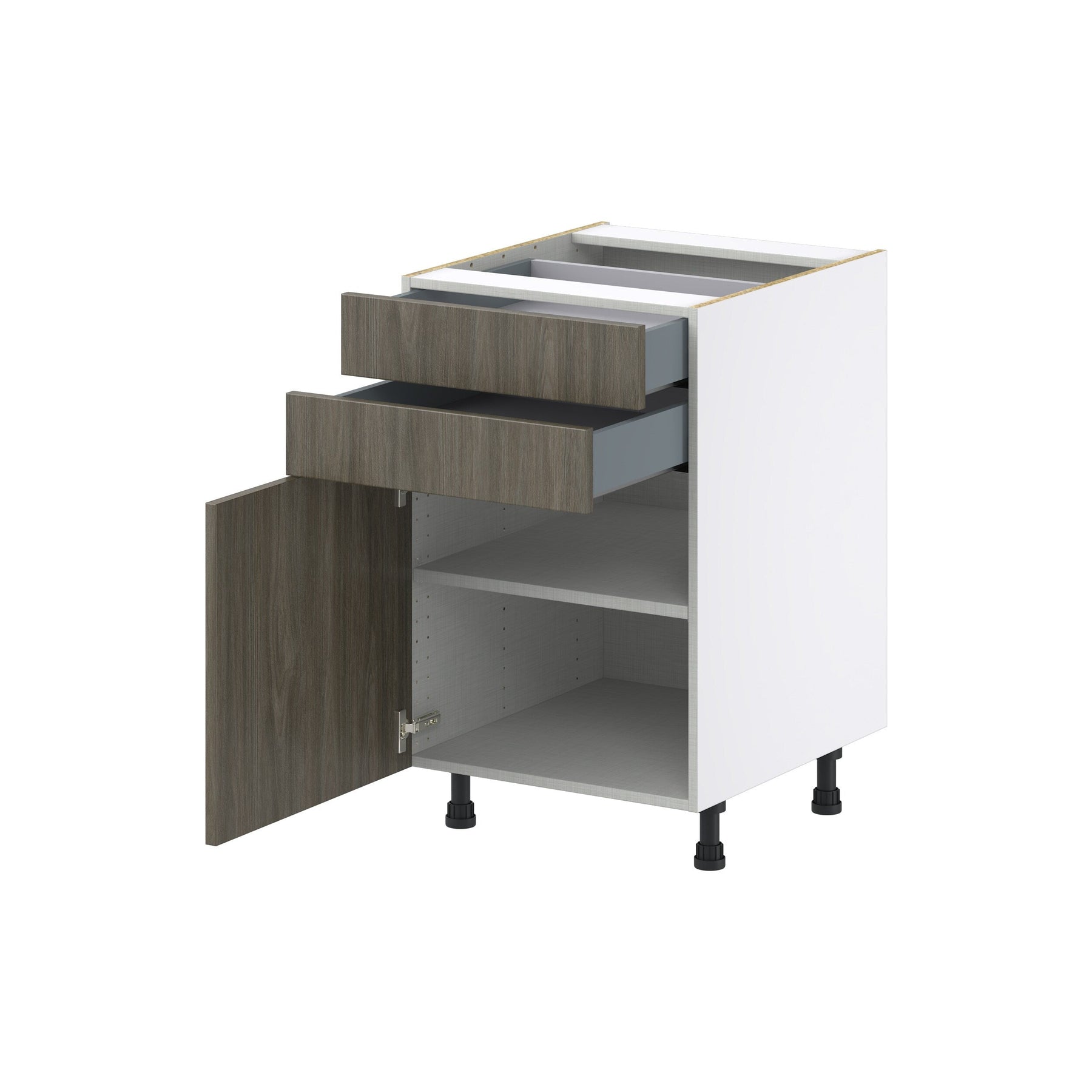 The Hugo&Borg Savane Textmel Base Cabinet combines modern aesthetics with unmatched functionality. Designed with a sleek flat panel slab style, it offers generous storage with full access European-style construction and soft-close features for a quiet, refined kitchen environment. Built from moisture-resistant textured woodgrain melamine, this cabinet effortlessly combines the appeal of wood with the durability needed for everyday use.
