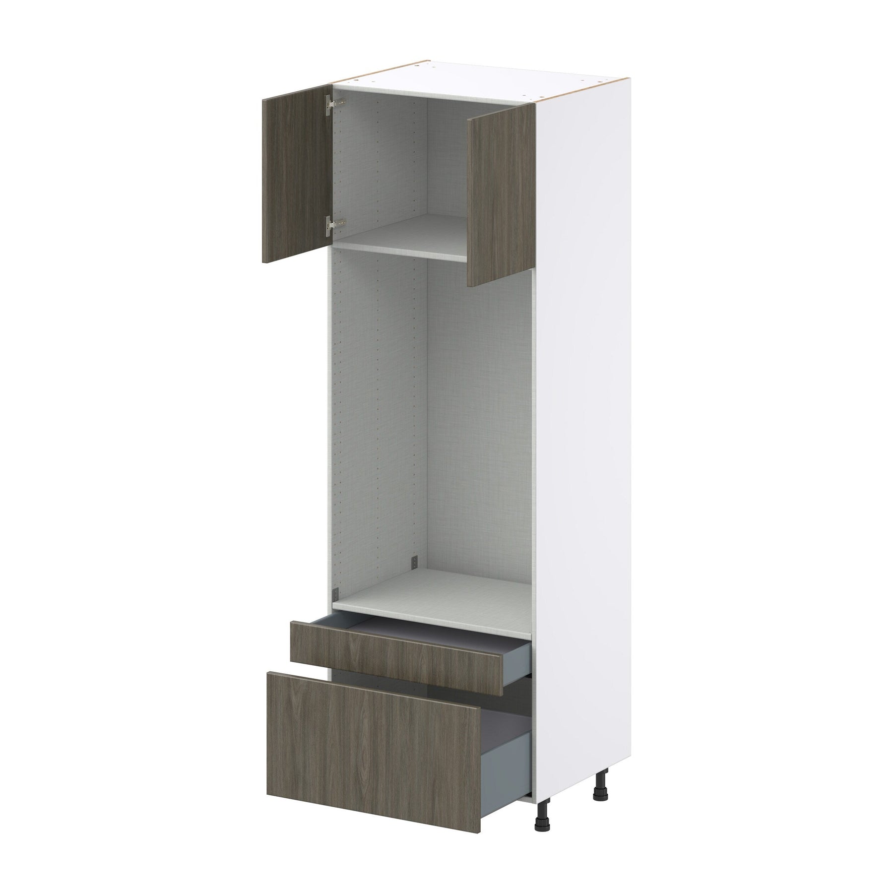 Hugo&Borg Savane 30-in W x 84.5-in H x 24-in D Textmel 2-Drawers Microwave Pantry Fully Assembled Cabinet (Flat Panel Slab Style)