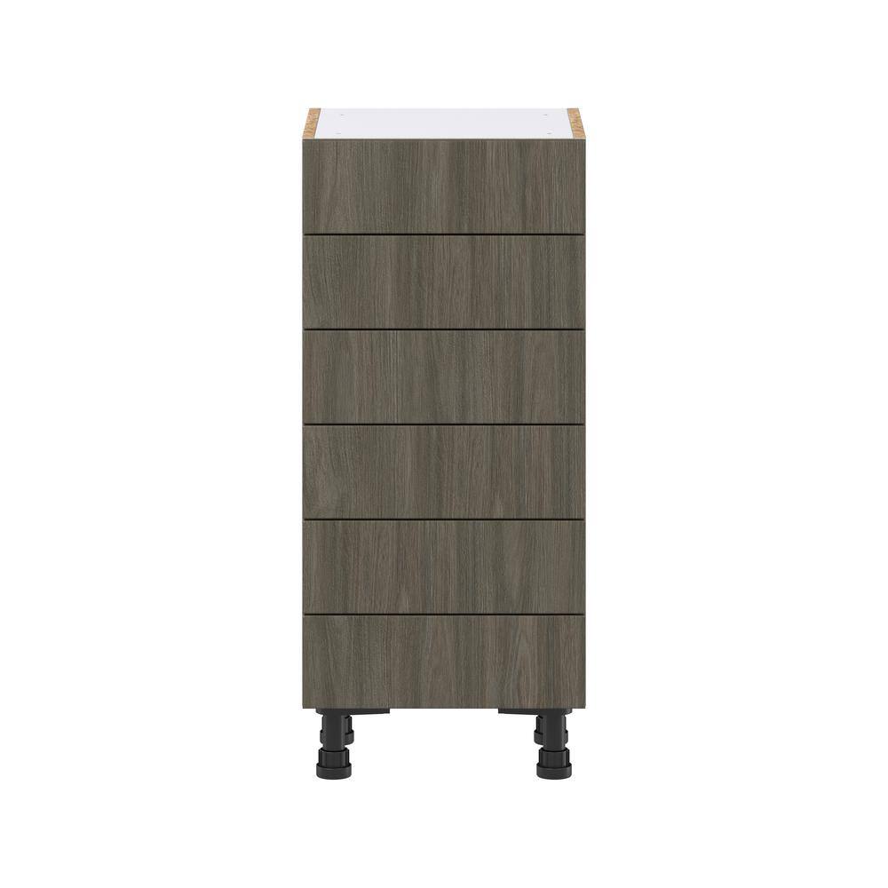 J COLLECTION 15 in. W x 34.5 in. H x 14 in. D Medora textured Slab Walnut Assembled Shallow Base Kitchen Cabinet with 6 Drawers
