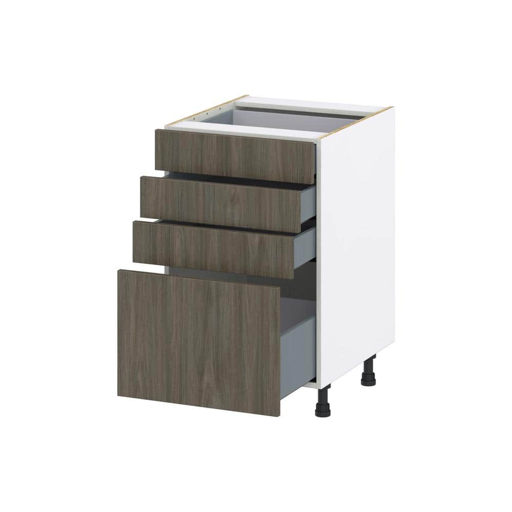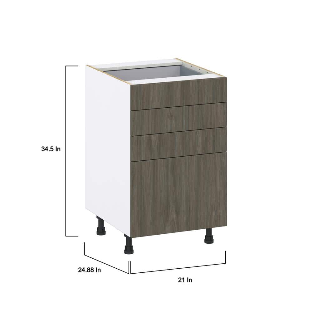 J COLLECTION 21 in. W x 34.5 in. H x 24 in. D Medora Textured Slab Walnut Shaker Assembled Base Kitchen Cabinet with 4 Drawers