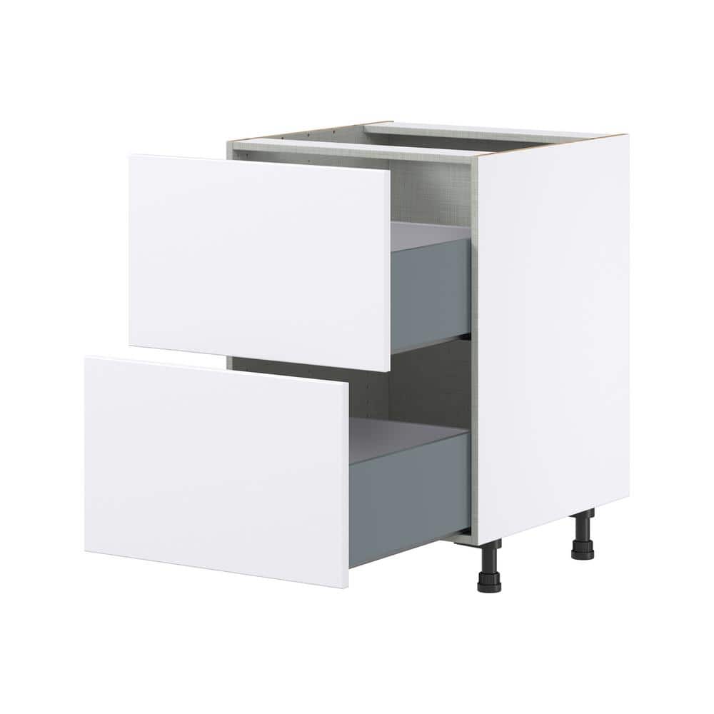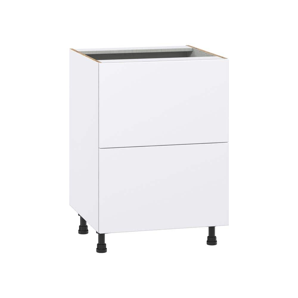 J COLLECTION Fairhope Bright White Slab Assembled Base Kitchen Cabinet with 2 Drawers (24 in. W x 34.5 in. H x 24 in. D)