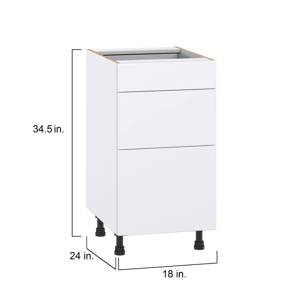 J COLLECTION Fairhope Bright White Slab Assembled Base Kitchen Cabinet with 3 Drawers (18 in. W x 34.5 in. H x 24 in. D)