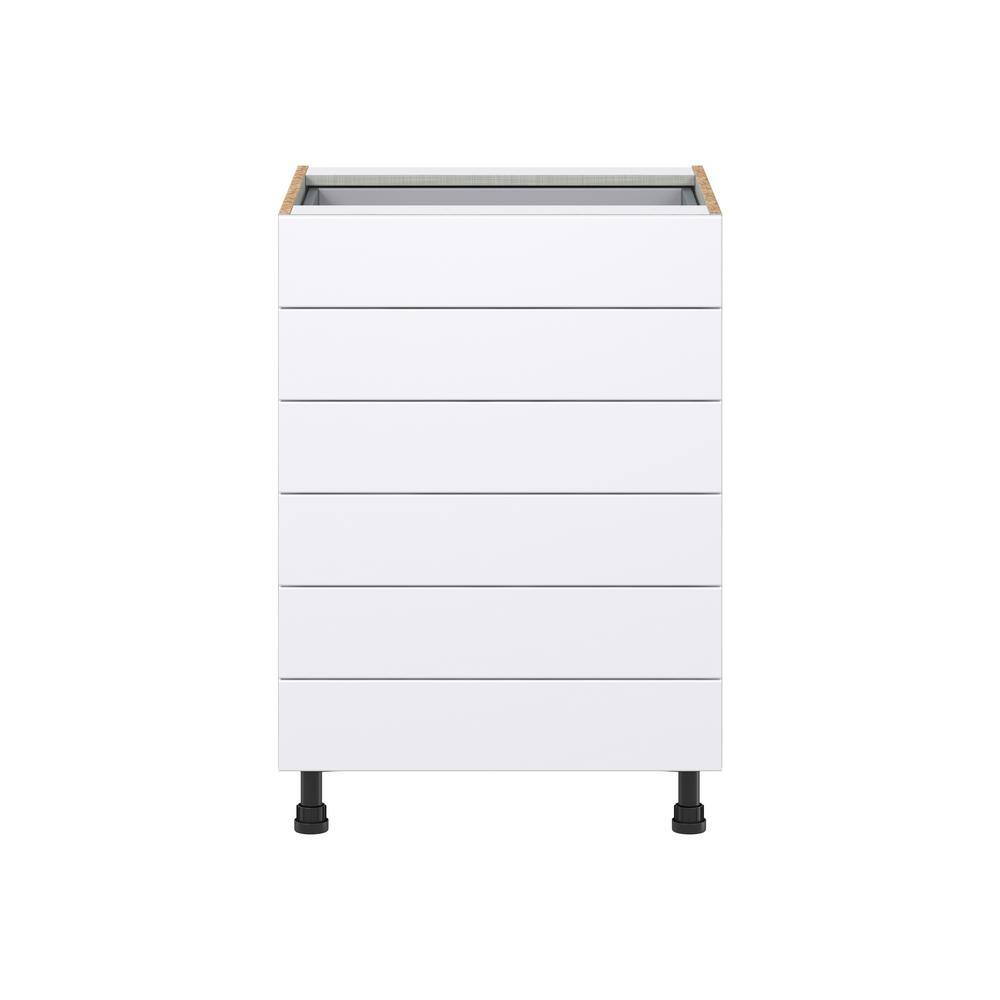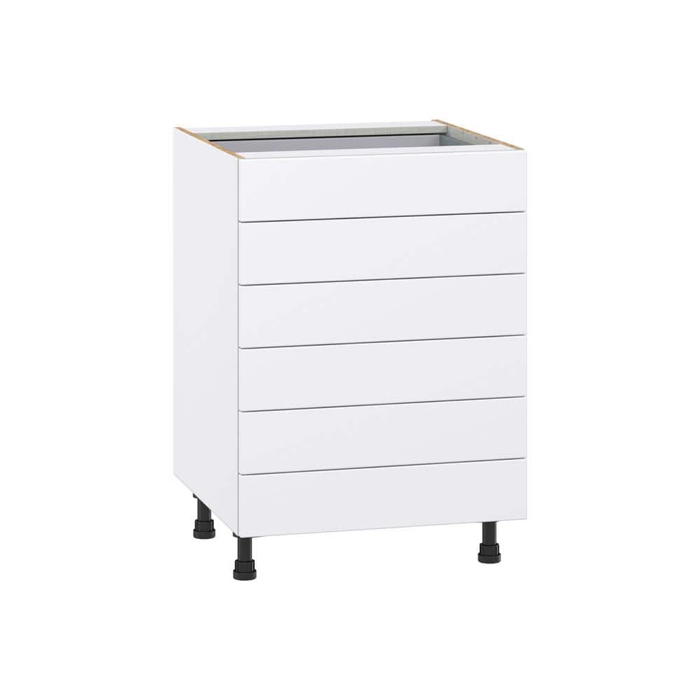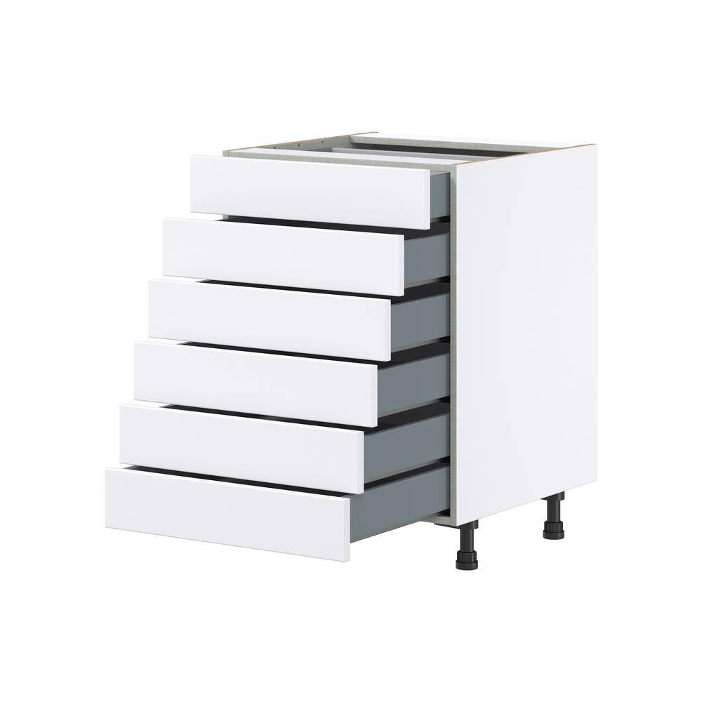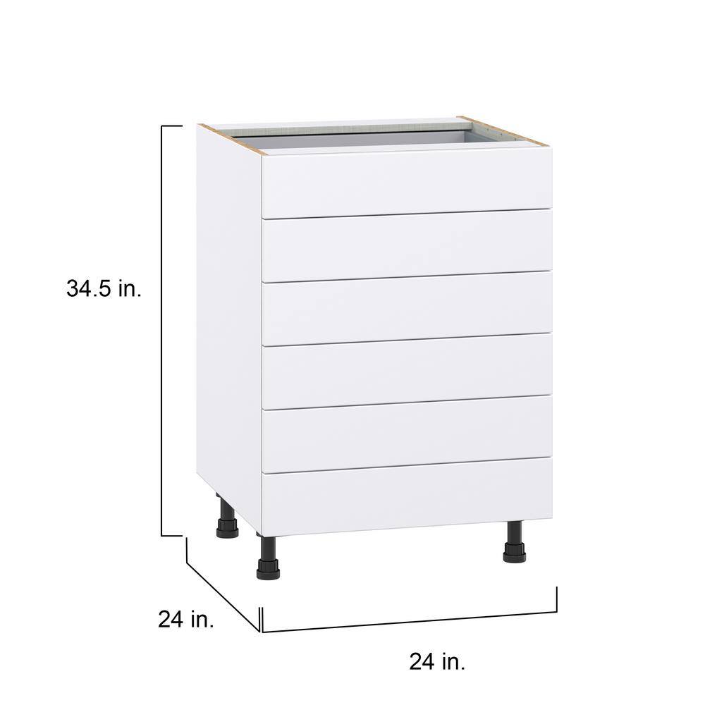 J COLLECTION Fairhope Bright White Slab Assembled Base Kitchen Cabinet with 6 Drawers (24 in. W x 34.5 in. H x 24 in. D)