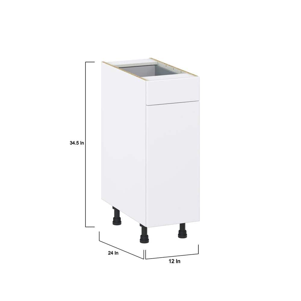 J COLLECTION Fairhope Bright White Slab Assembled Base Kitchen Cabinet with a Drawer (12 in. W X 34.5 in. H X 24 in. D)