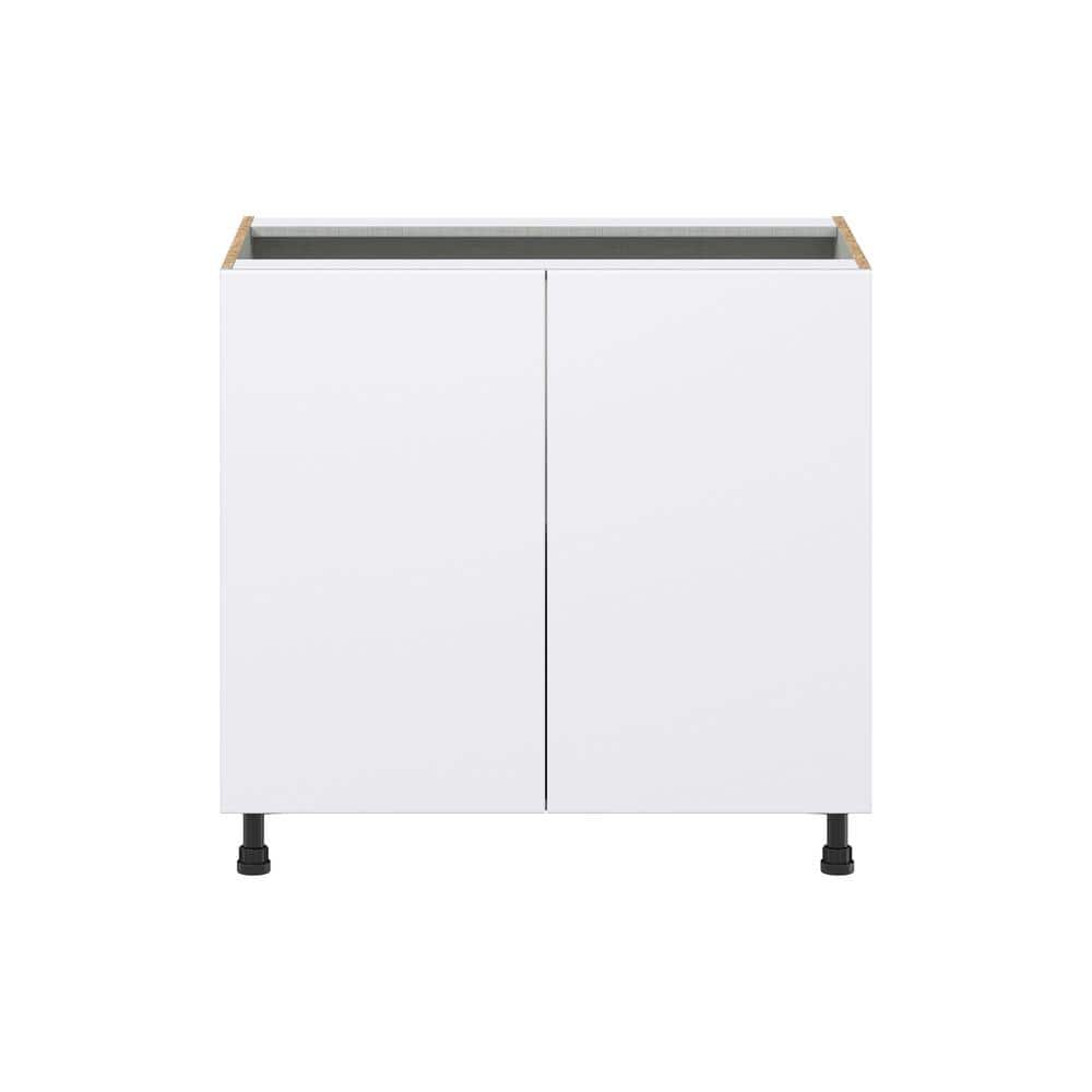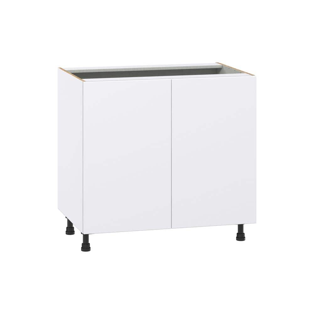 J COLLECTION Fairhope Bright White Slab Assembled Base Kitchen Cabinet with Full Height Doors (36 in. W x 34.5 in. H x 24 in. D)