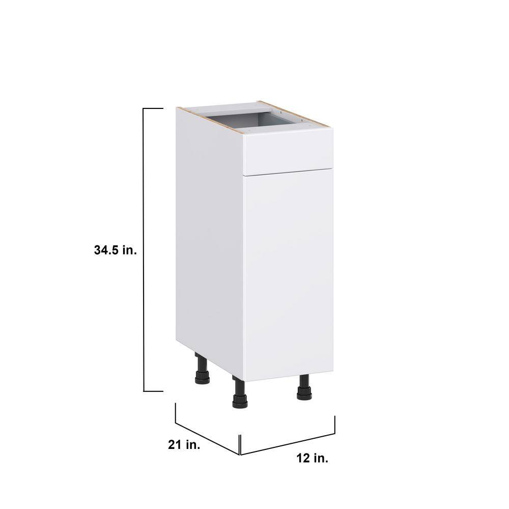 J COLLECTION Fairhope Bright White Slab Assembled Vanity Base Cabinet with 1 Drawer (12 in. W x 34.5 in. H x 21 in. D)