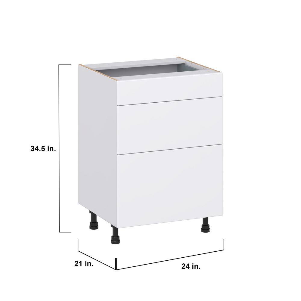 J COLLECTION Fairhope Bright White Slab Assembled Vanity Drawer Base Cabinet with 3 Drawers (24 in. W x 34.5 in. H x 21 in. D)