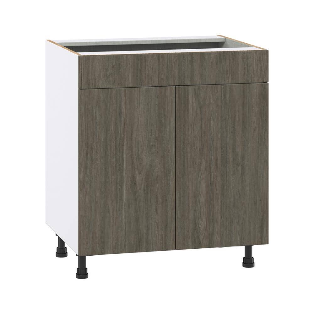 J COLLECTION Medora 30 in. W x 34.5 in. H x 24 in. D Textured Slab Walnut Assembled Sink Base Kitchen Cabinet with a False Front
