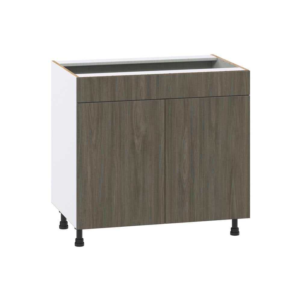 J COLLECTION Medora 36 in. W x 34.5 in. H x 24 in. D Textured Slab Walnut Assembled Sink Base Kitchen Cabinet with a False Front
