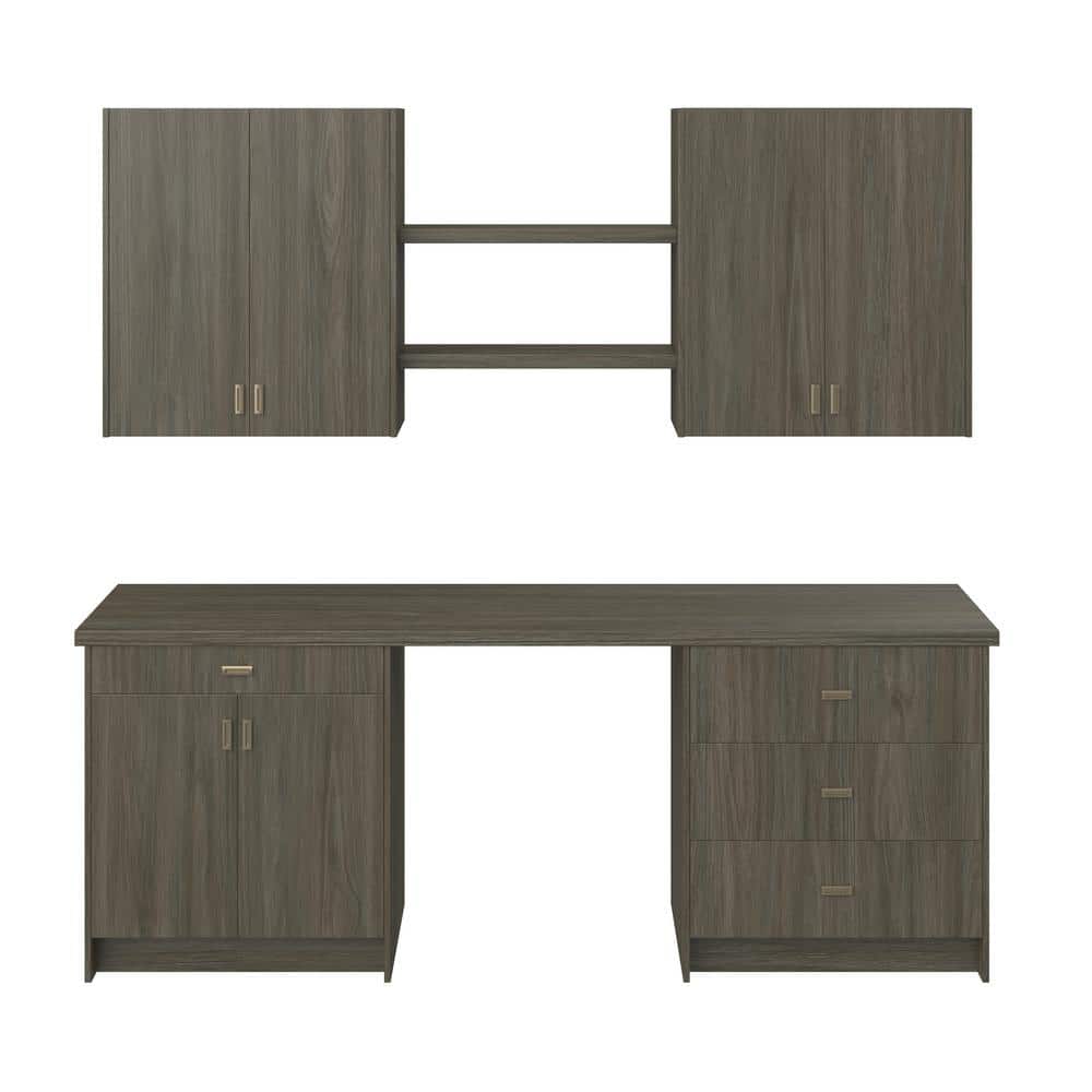 J COLLECTION Medora 92.5 in. W x 89.5 in. H x 24 in. D Textured Slab Walnut Office Base Cabinet Bundle