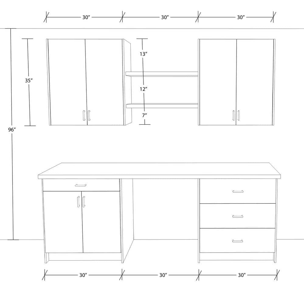 • Modular Components: Includes 3-drawer base cabinet among others for versatile storage solutions.